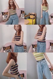 【送料無料】マルチボーダー ニットキャミソール t-10