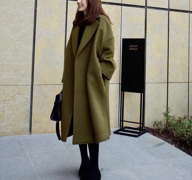 【送料無料】スムース ロング ウール コート ガウン t-106