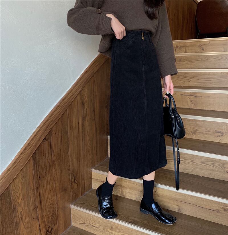【送料無料】コーデュロイ ミディ丈 スカート ミモレ丈 タイトスカート ストレート t-110