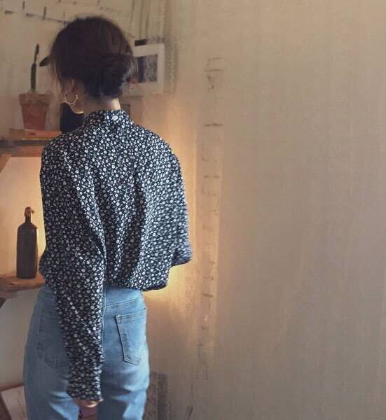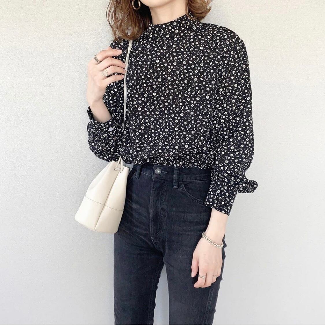 【送料無料】スタンドカラー フラワー ブラウス レトロ シャツ 花柄ブラウス t-124