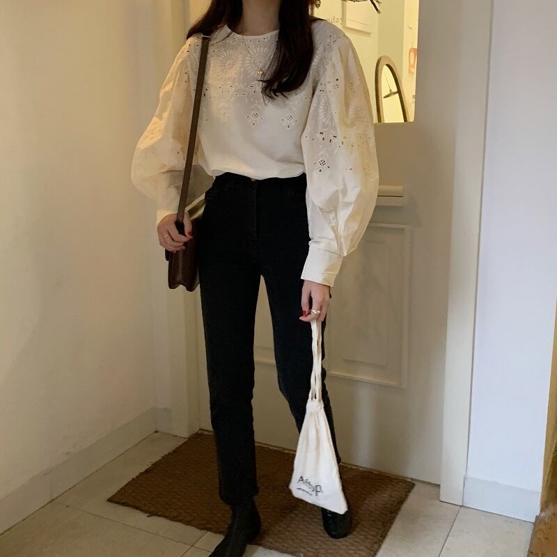 【送料無料】フラワー コンシャス ブラウス カットワークブラウス レトロ t-125