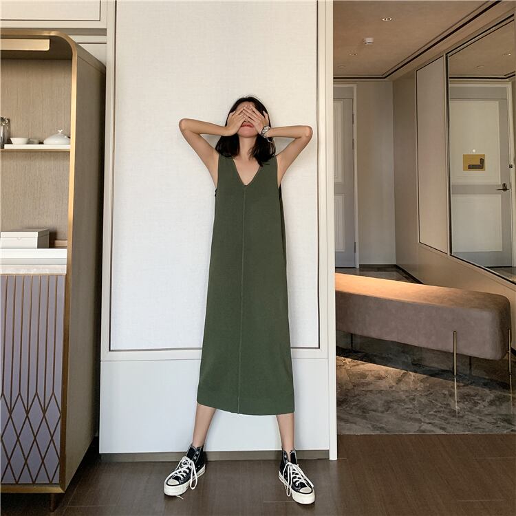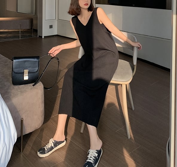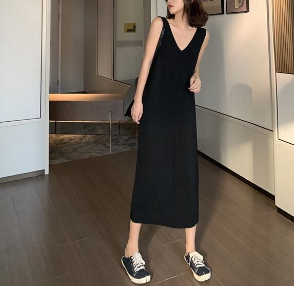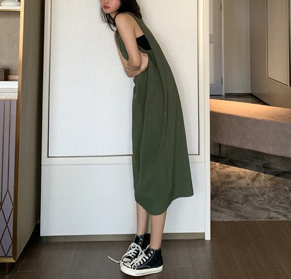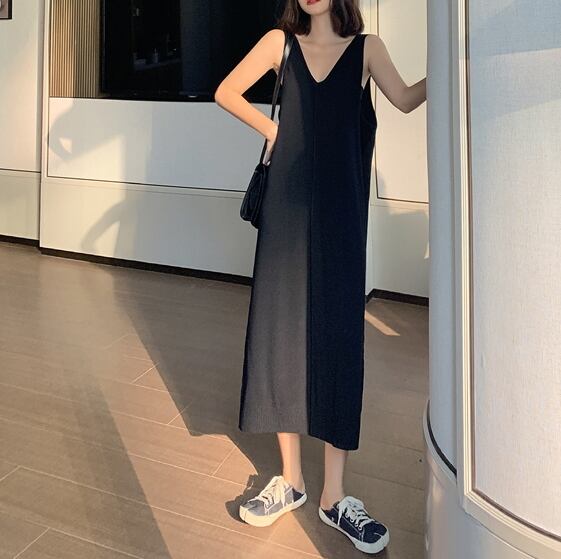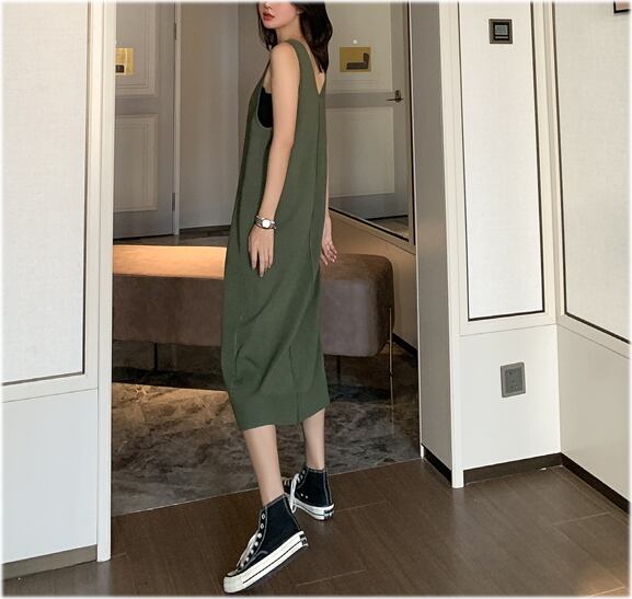 【送料無料】ニット ロングワンピース ノースリーブ ワンピース t-169