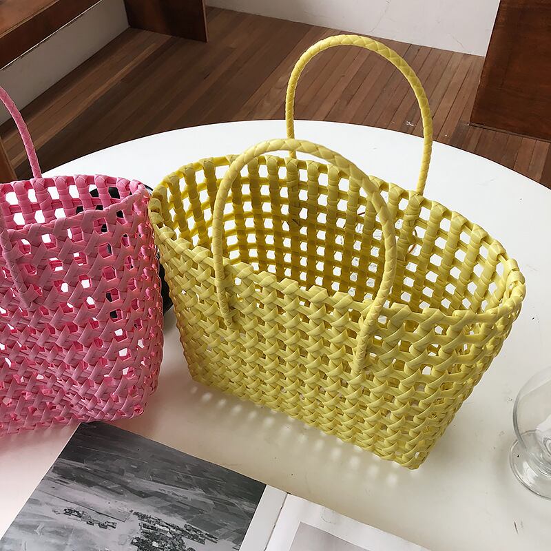 【送料無料】ウェーブ かごバッグ ピクニックバッグ ハンドバッグ トート t-185