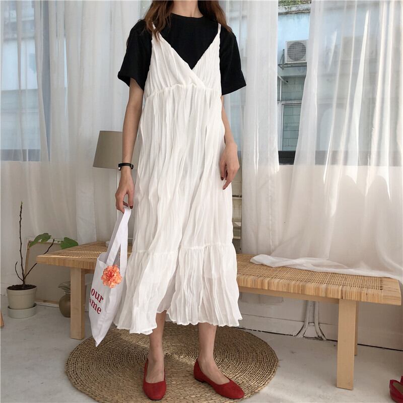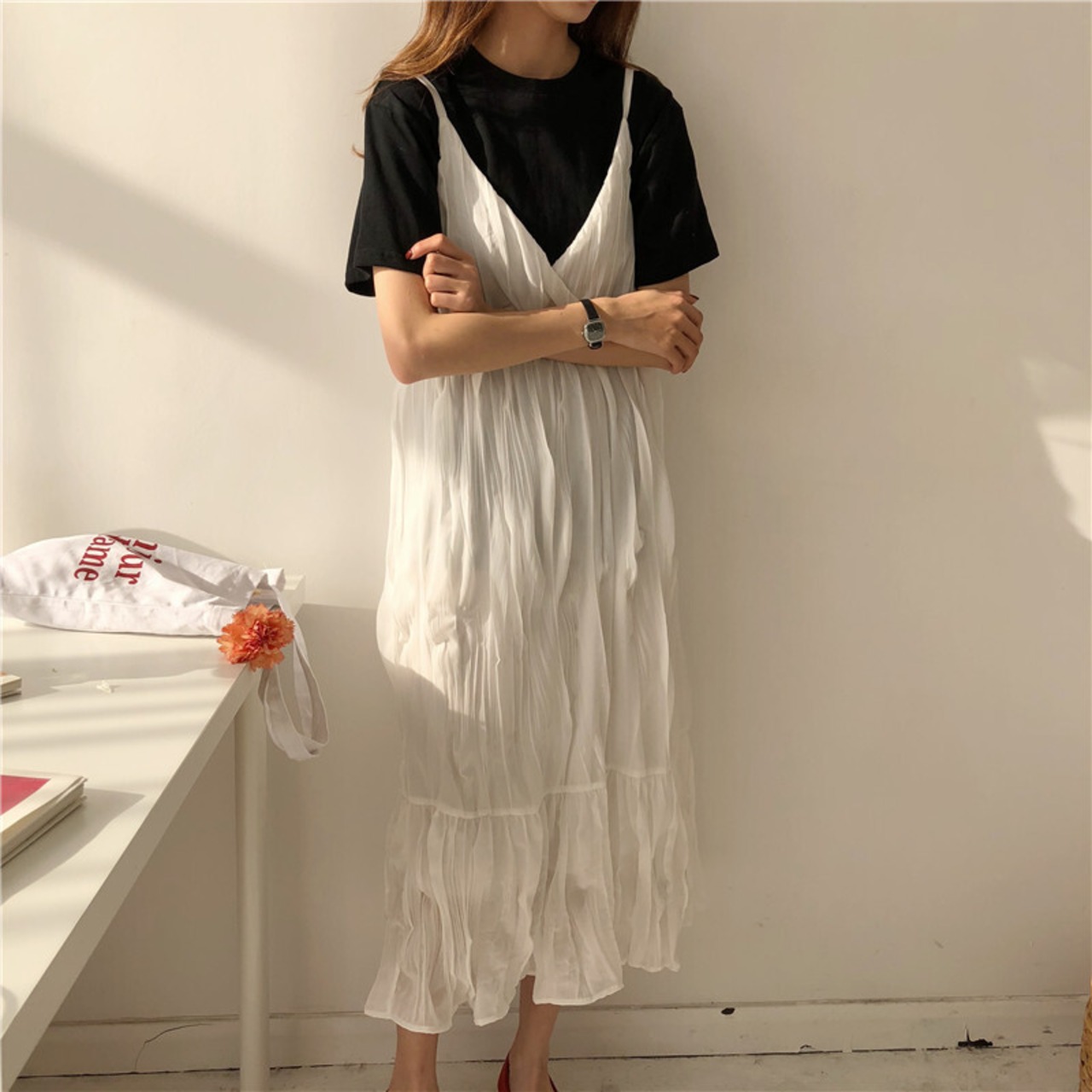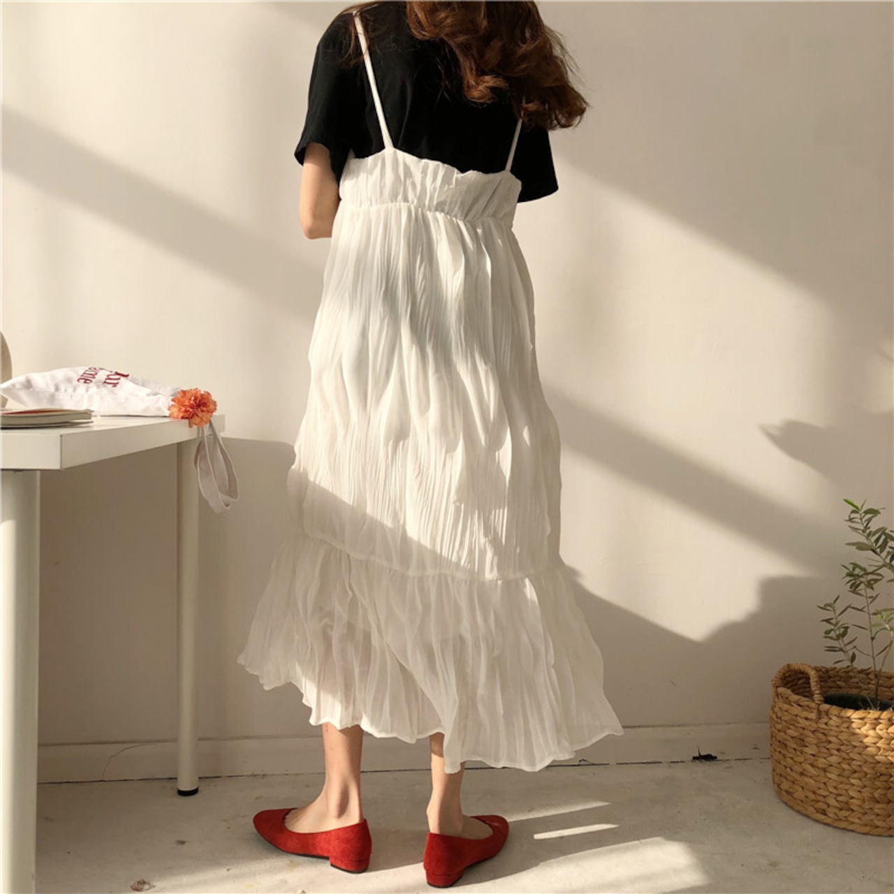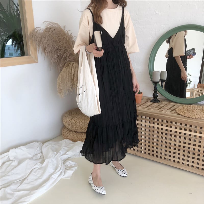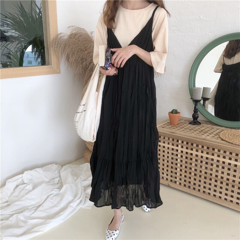【送料無料】シャーリングワンピース キャミソール ロングワンピース ワンピース t-194