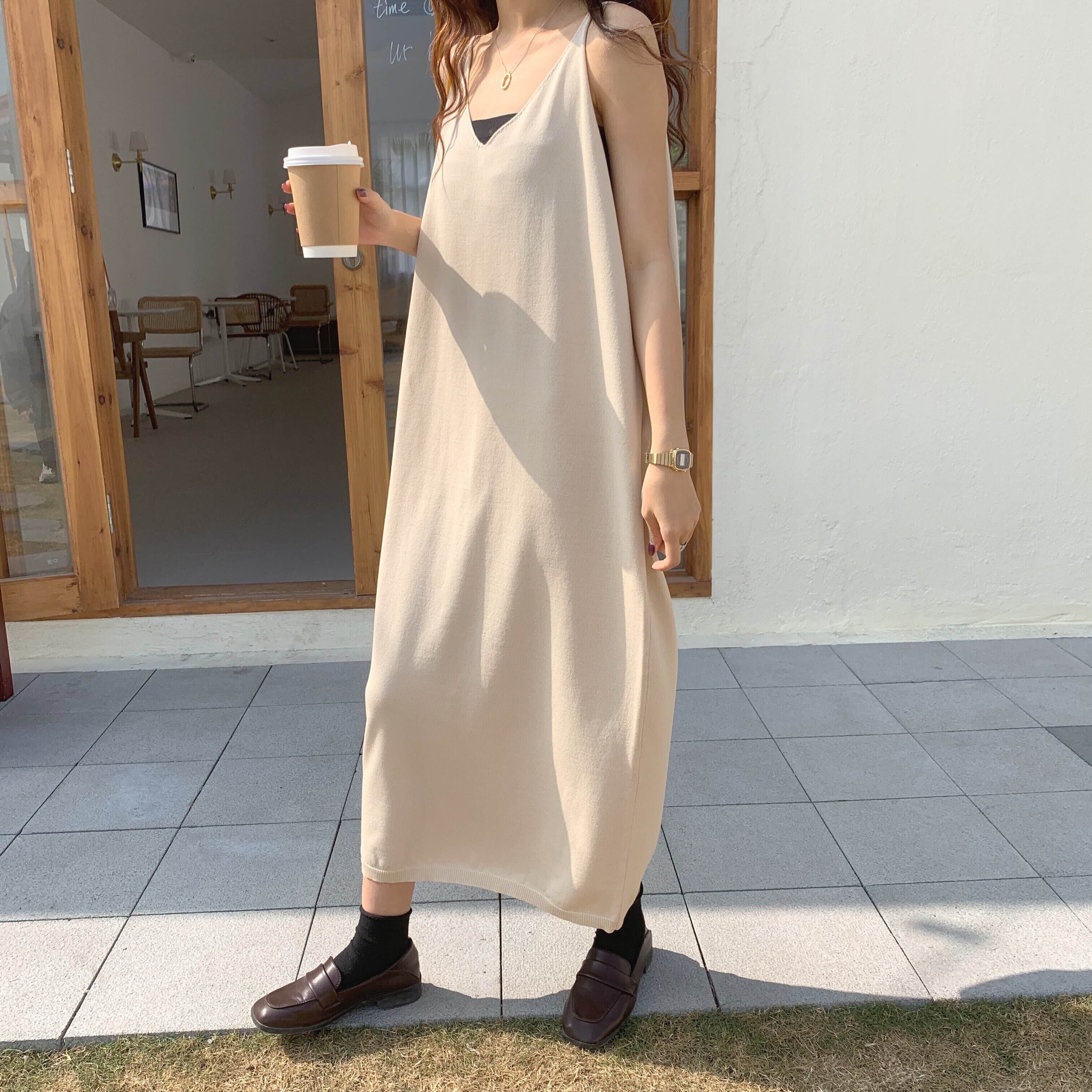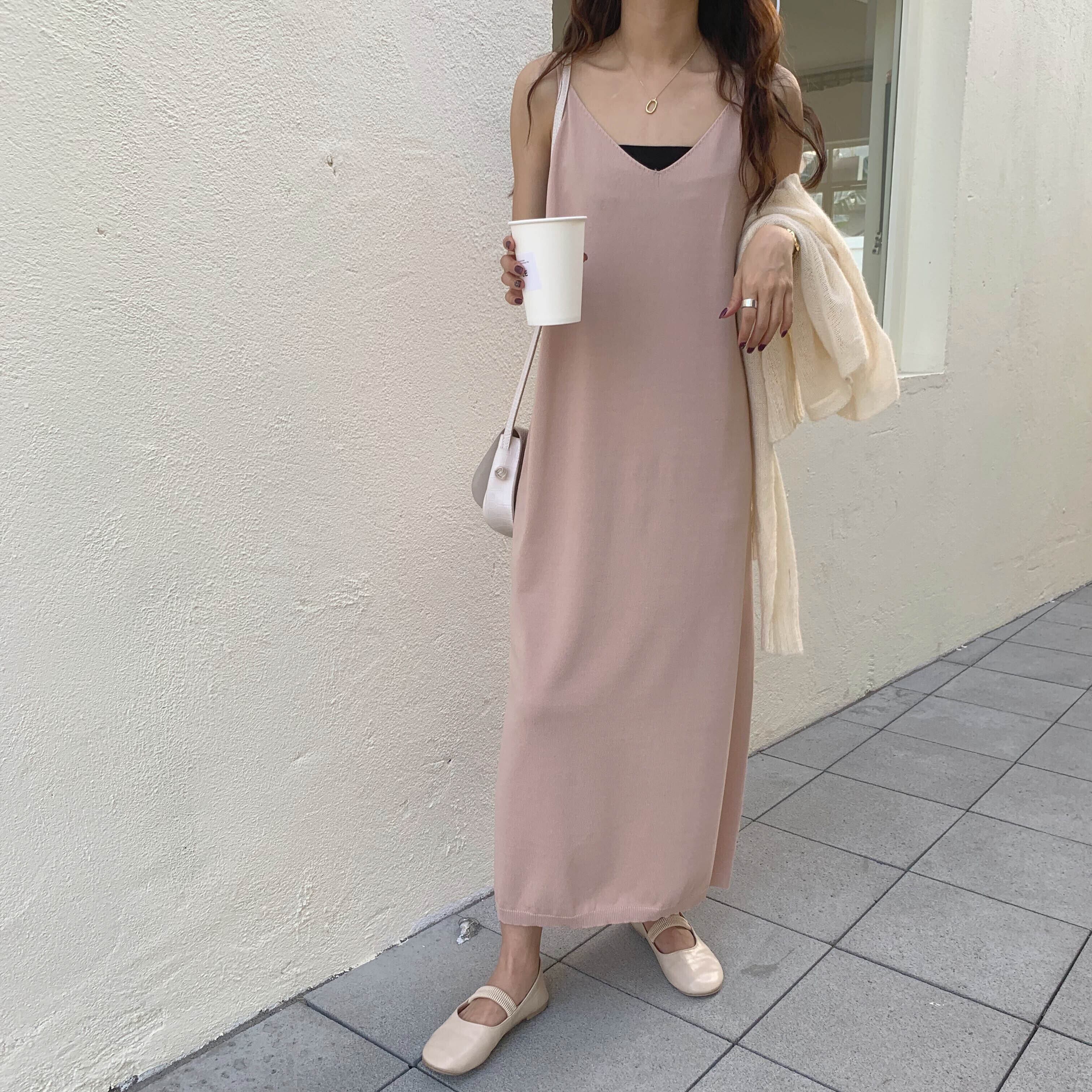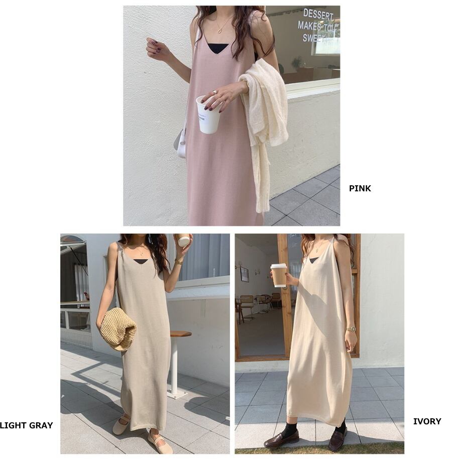 【送料無料】ニットキャミソールワンピース キャミソール ロングワンピース ワンピース t-195