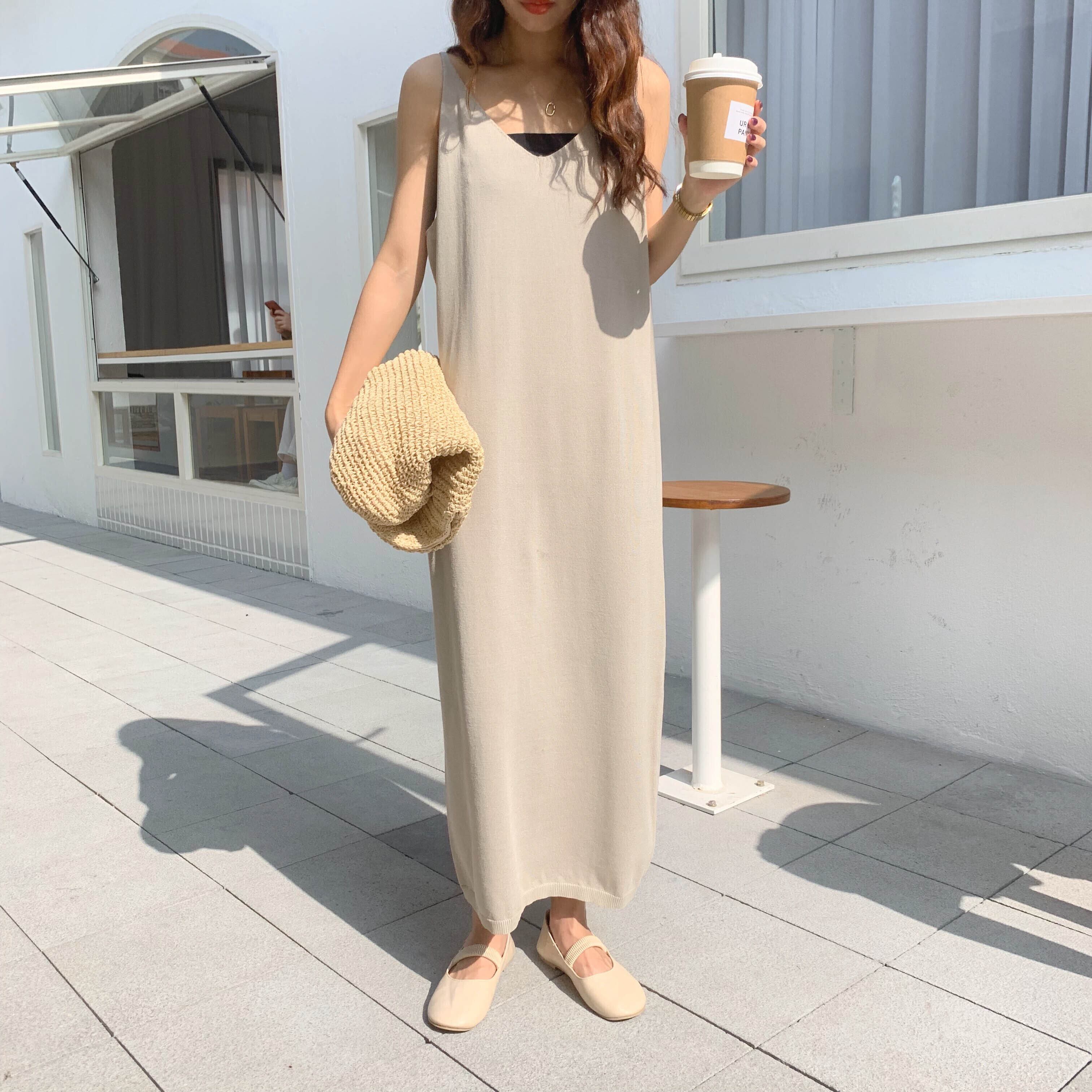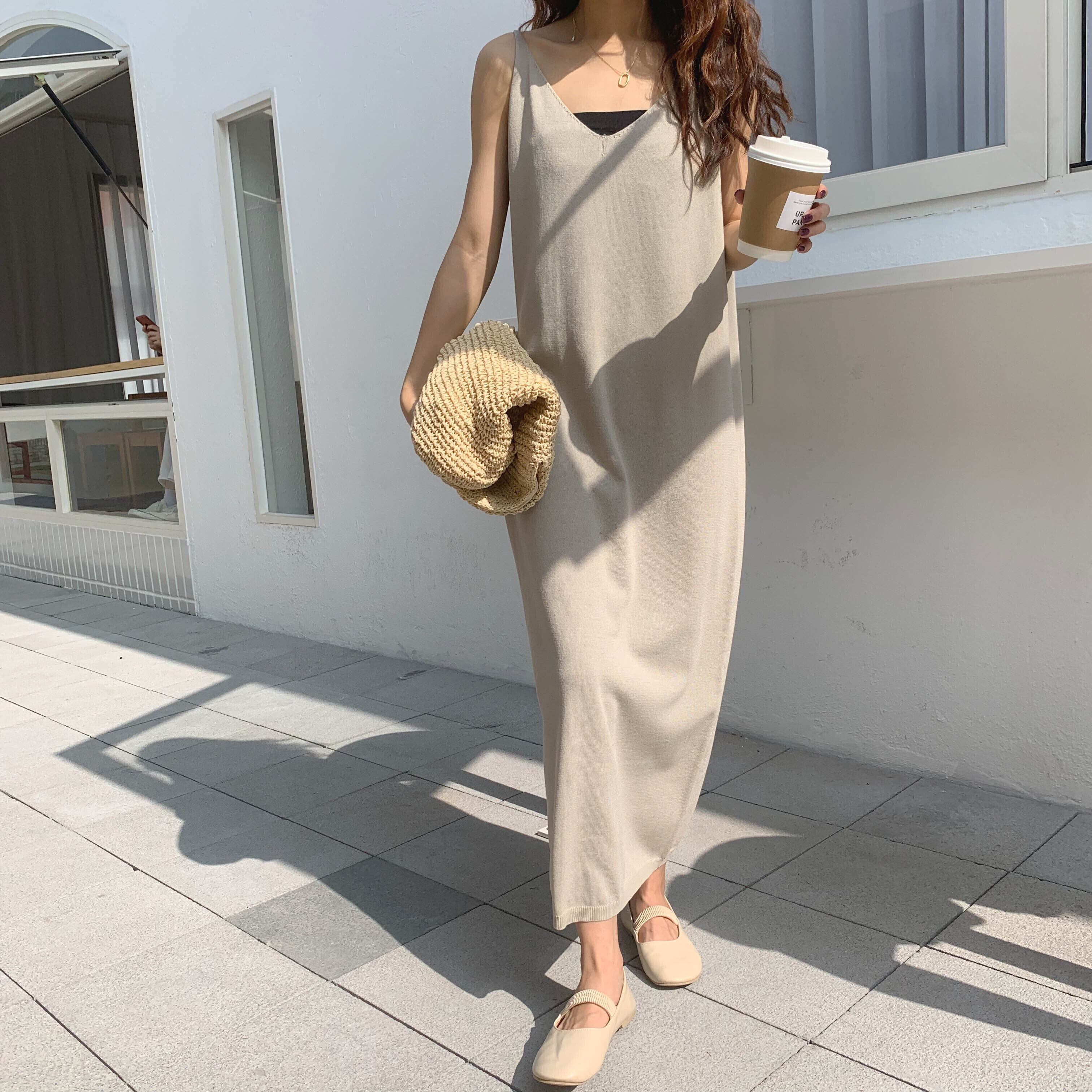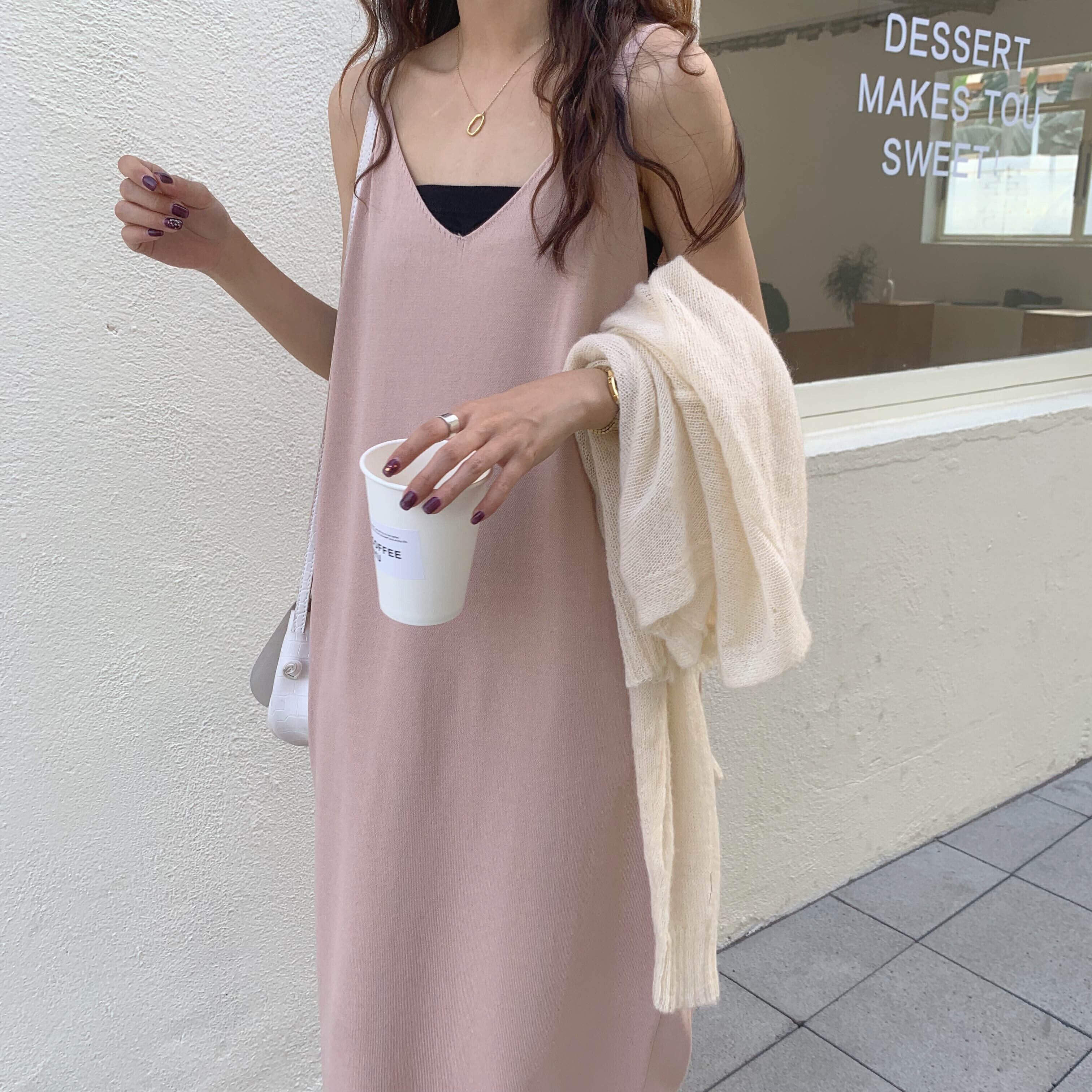 【送料無料】ニットキャミソールワンピース キャミソール ロングワンピース ワンピース t-195
