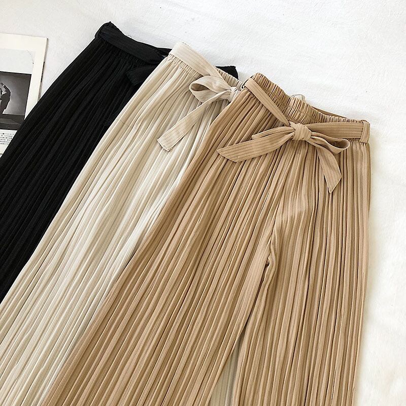 【送料無料】プリーツ リボン パンツ カジュアル リラックスパンツ t-202