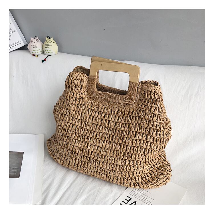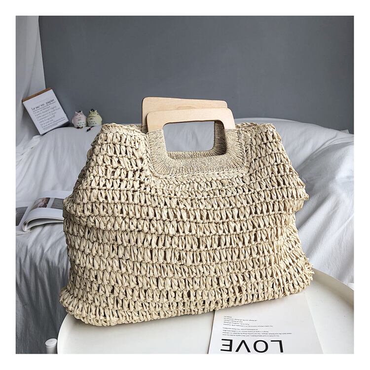 【送料無料】ウッドハンドル かごバッグ ビッグ ハンドバッグ スクエア バッグ t-206