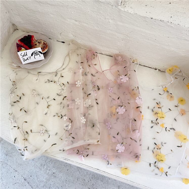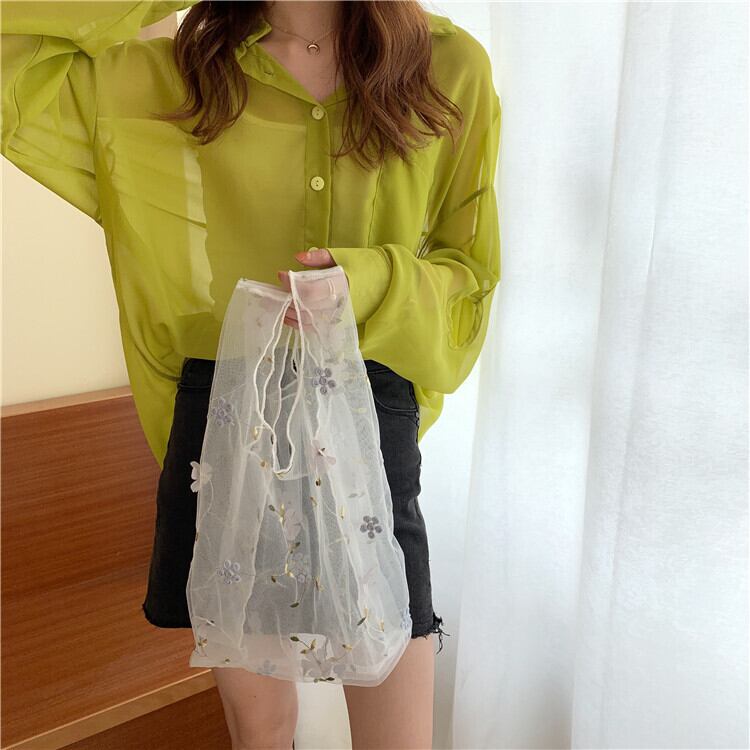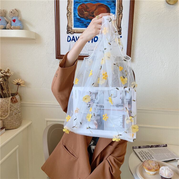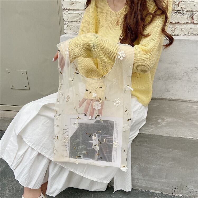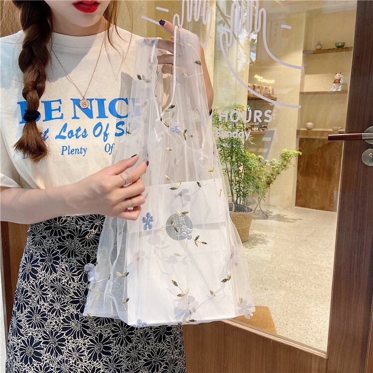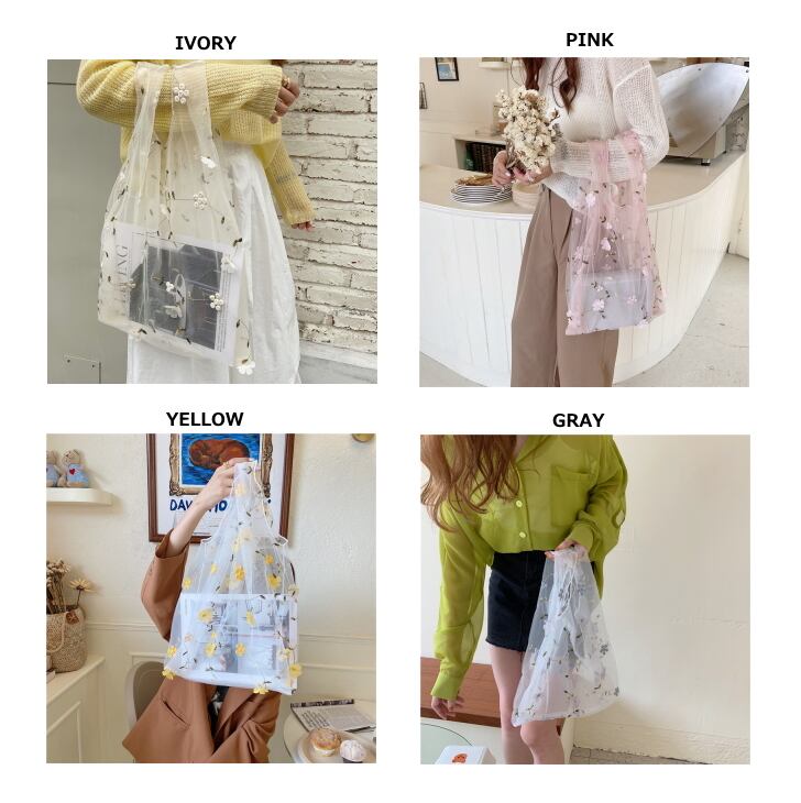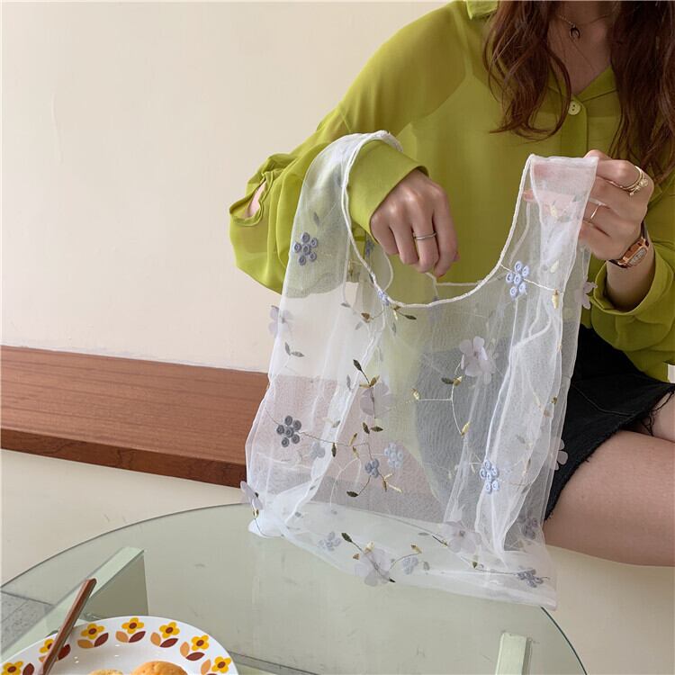 【送料無料】刺繍 シアーフラワーバッグ マーケットバッグ マイバッグ シアーバッグ t-226