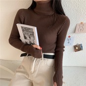 【送料無料】リブタートルネックニット ハイネック ニット リブ トップス t-285