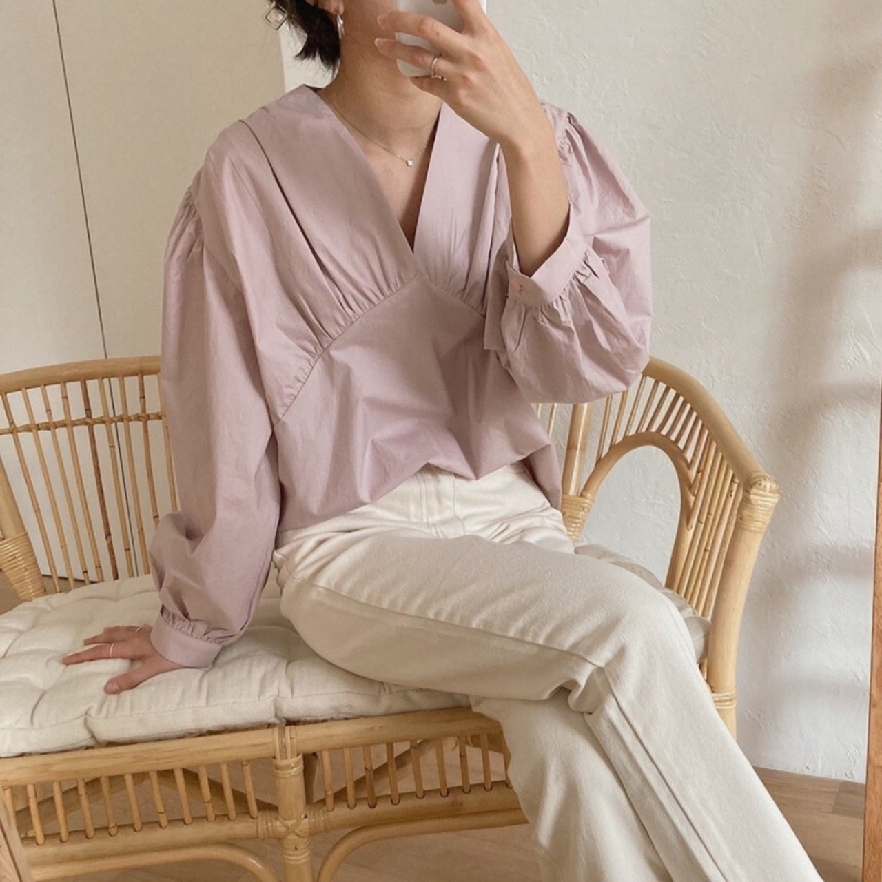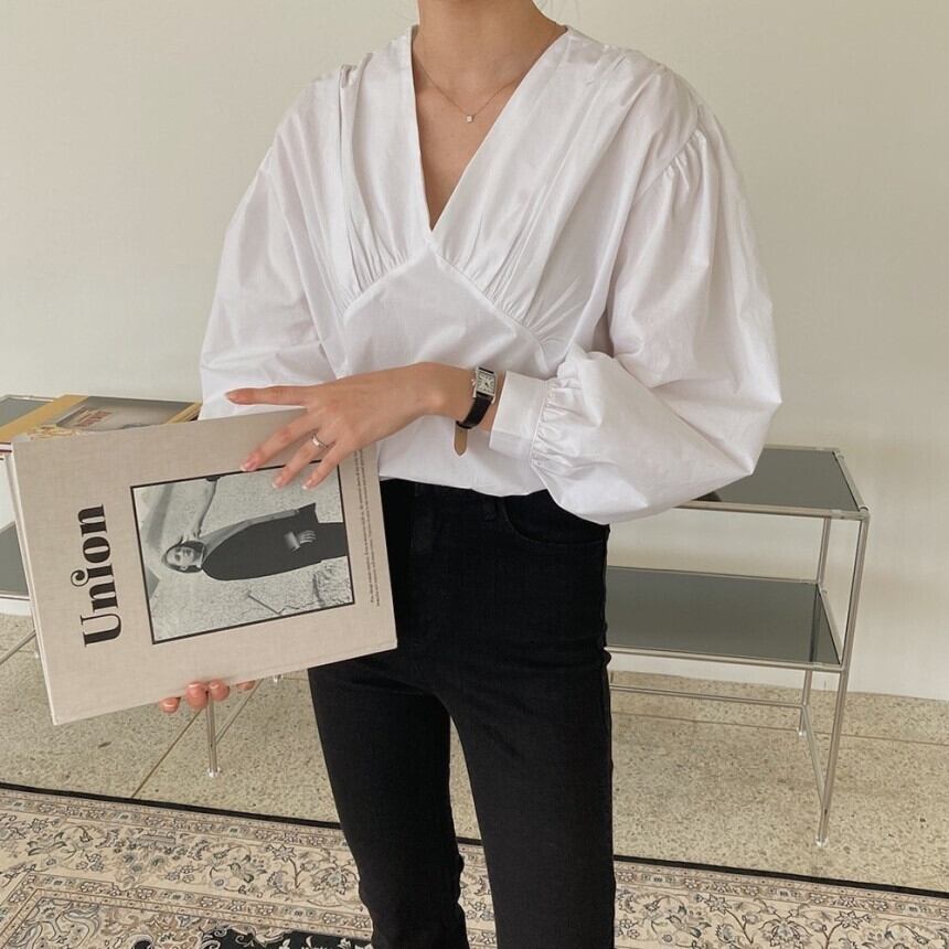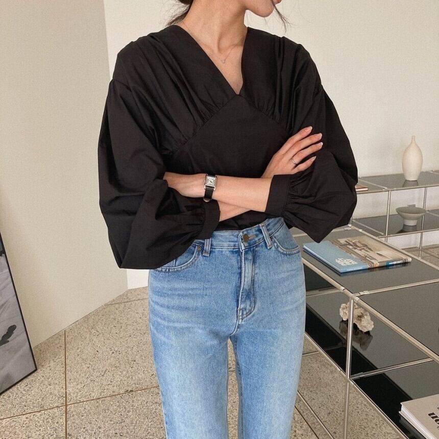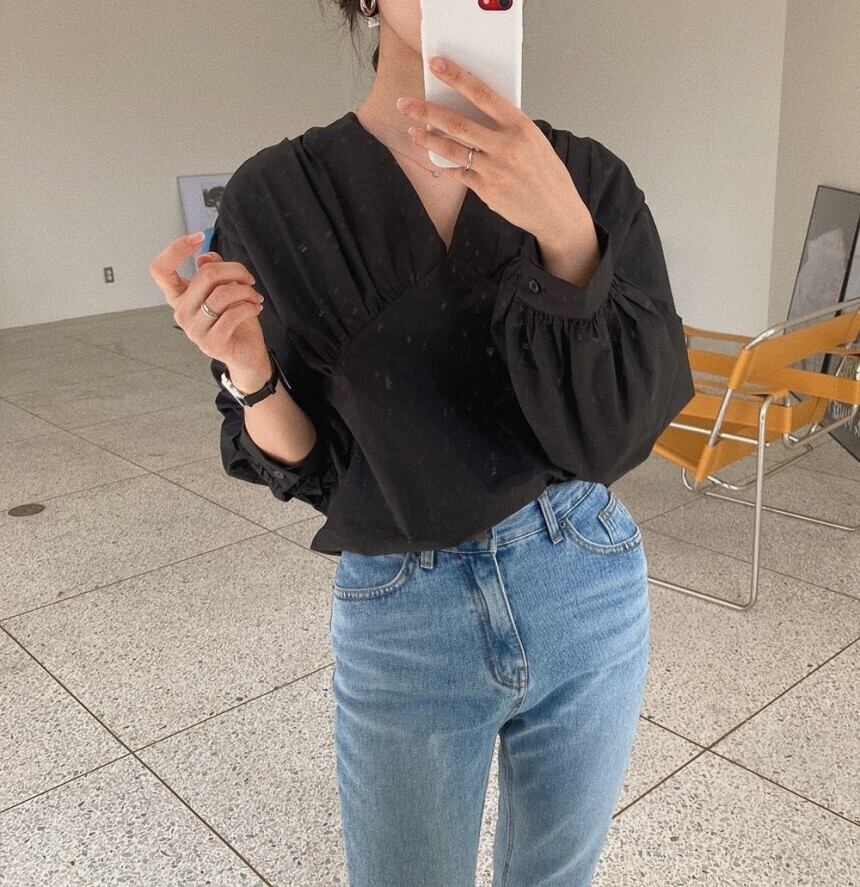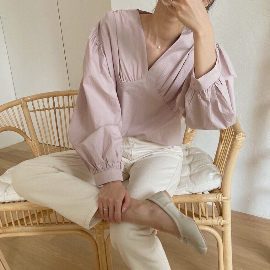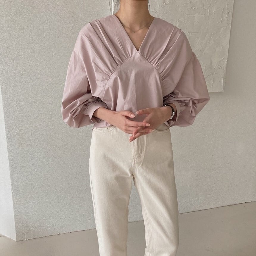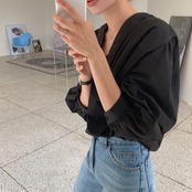 【送料無料】Vネック パフスリーブブラウス トップス t-305