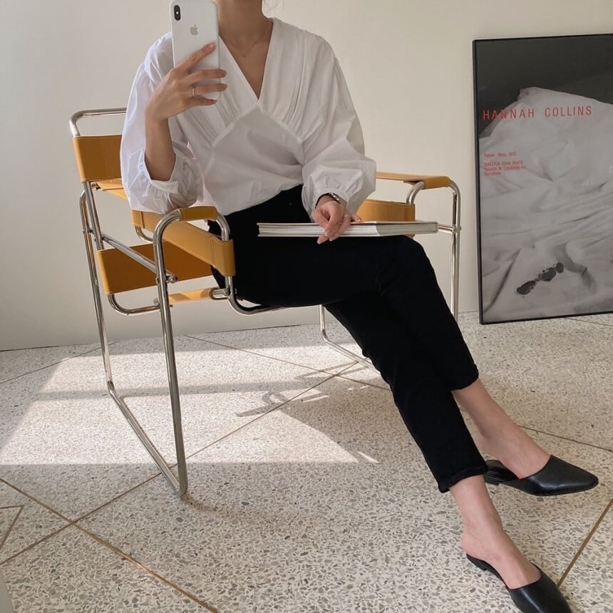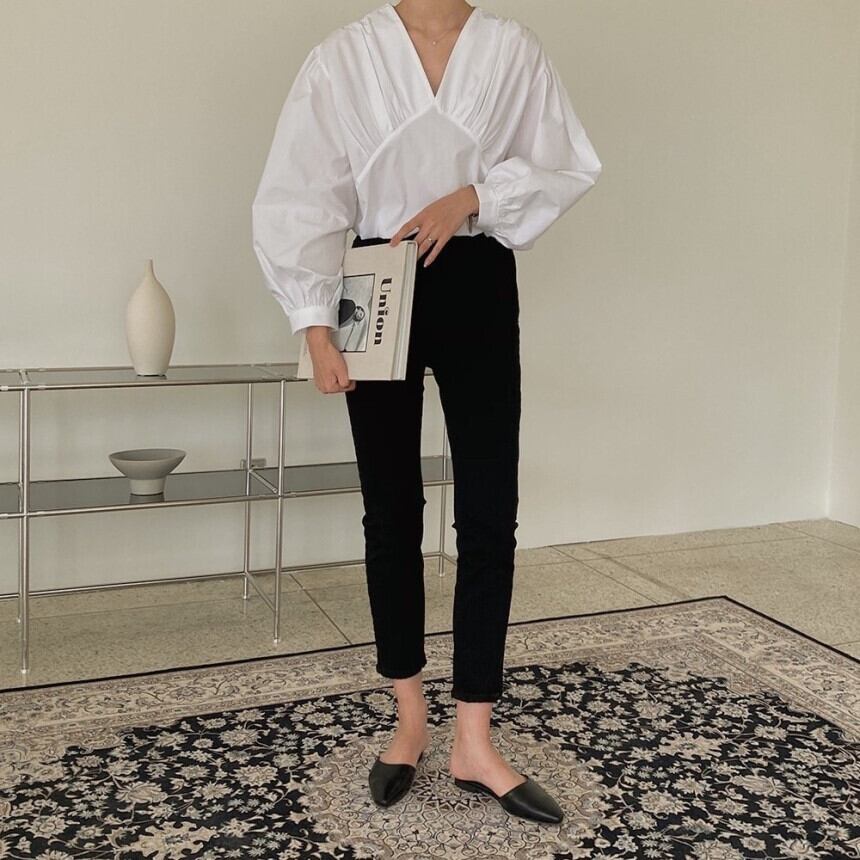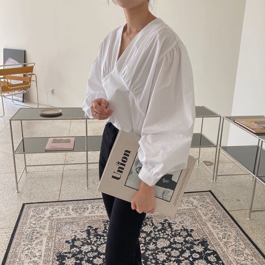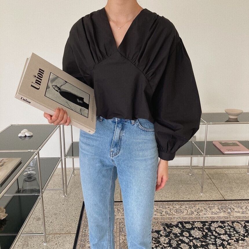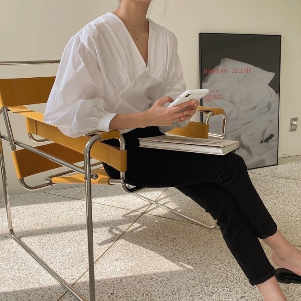 【送料無料】Vネック パフスリーブブラウス トップス t-305