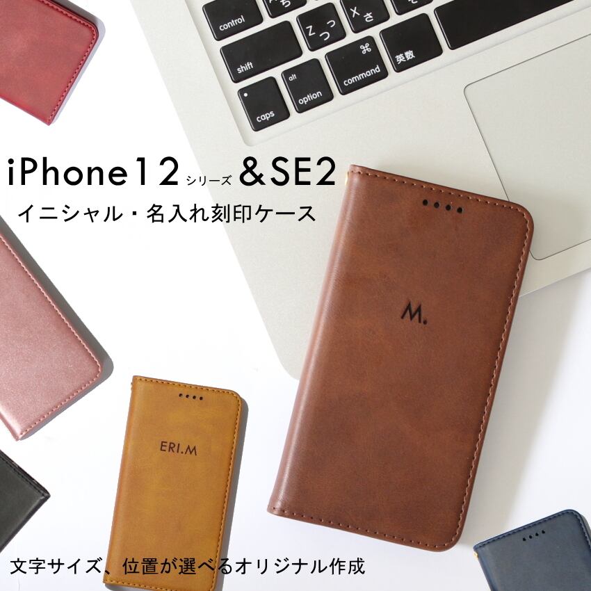 【送料無料】オリジナル iphoneケース イニシャル刻印 手帳型 名入れ PUレザー オリジナル プリント カバー iPhone12