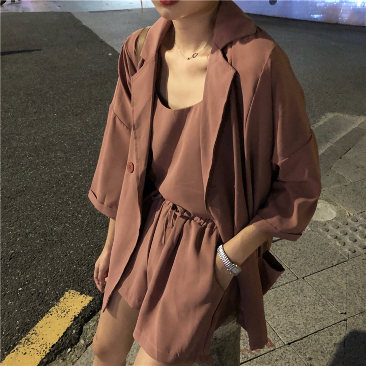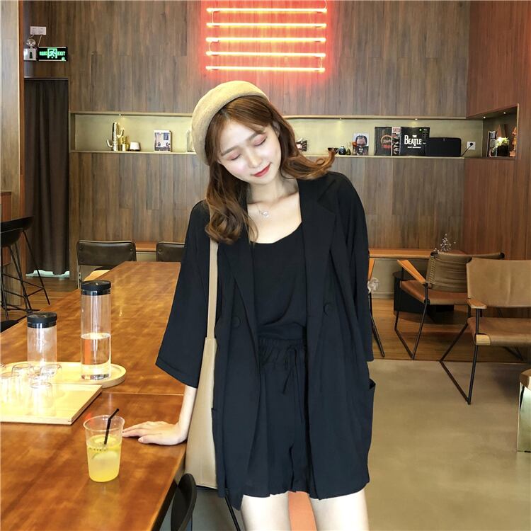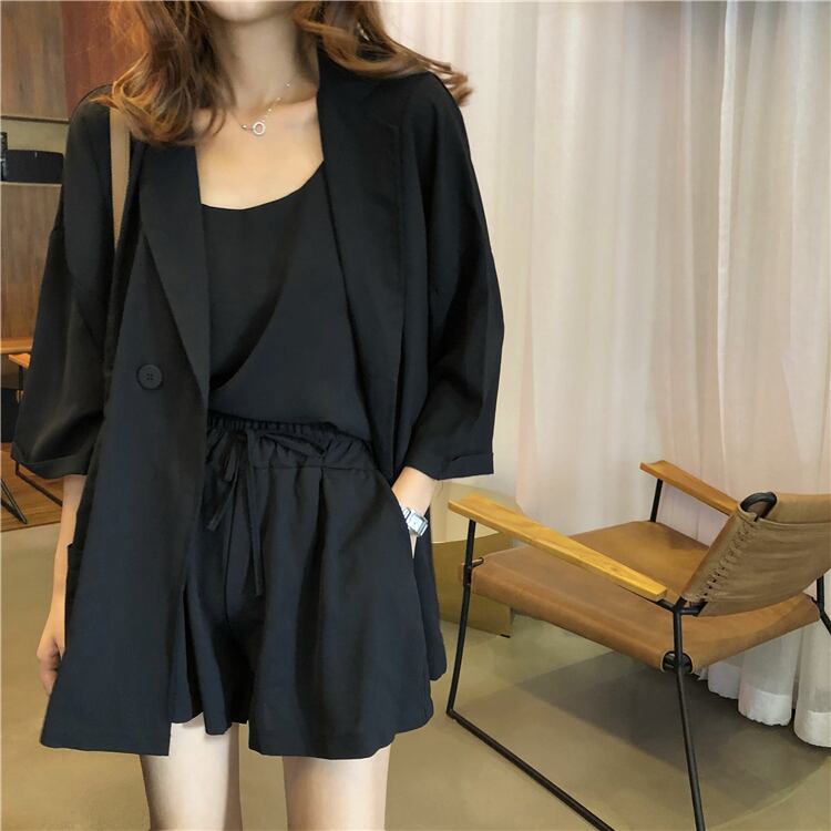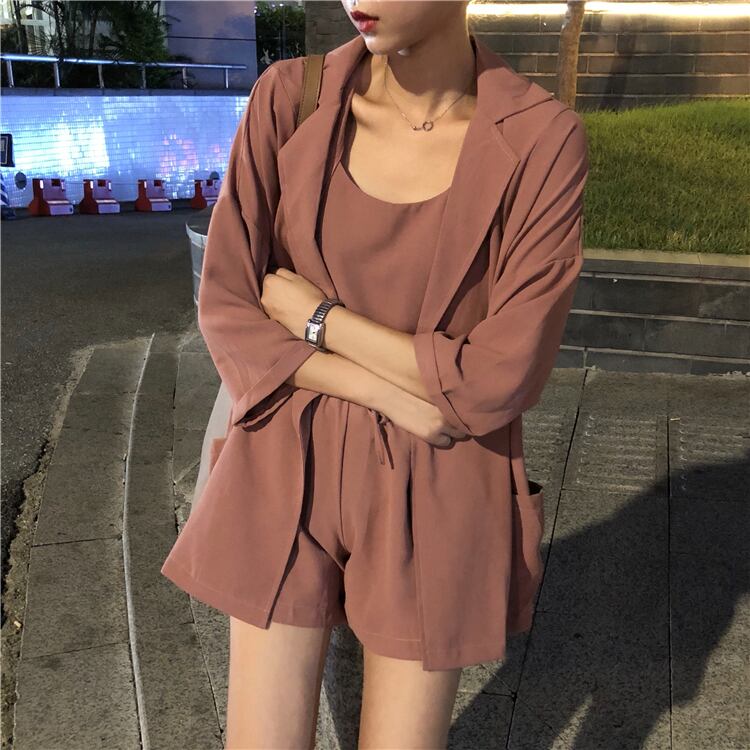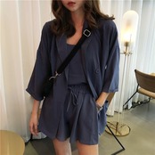 七分丈ライトジャケットとハーフ丈サロペットの2点セット