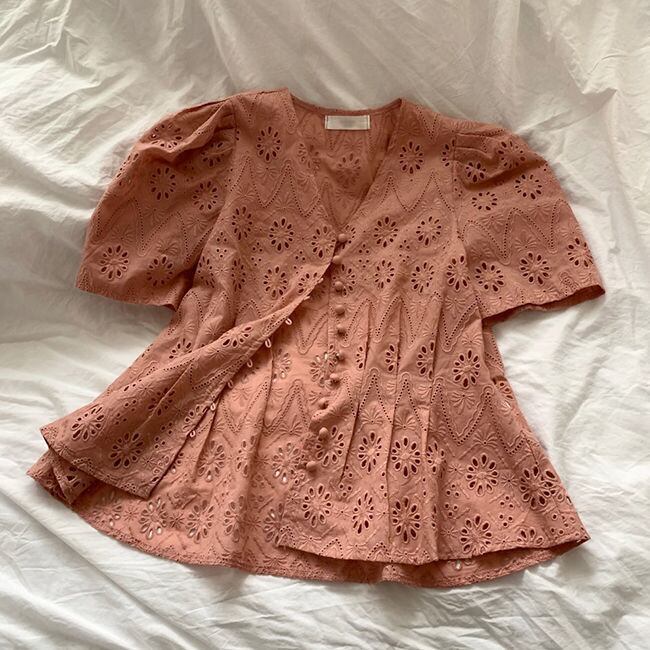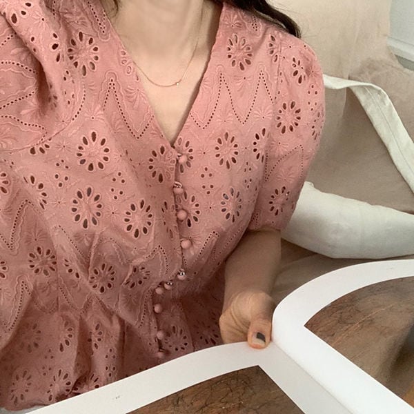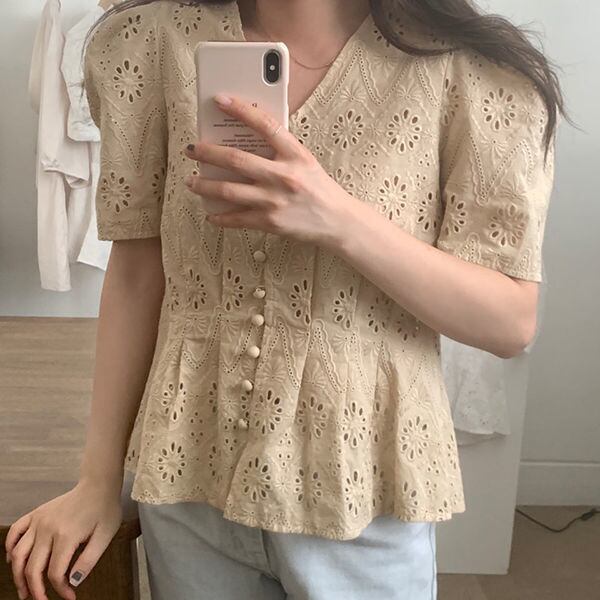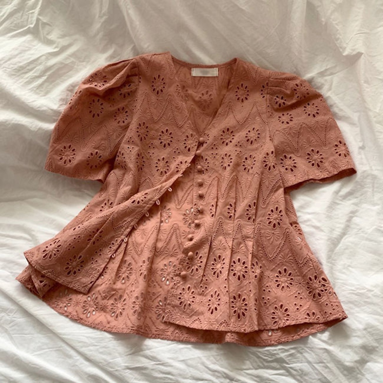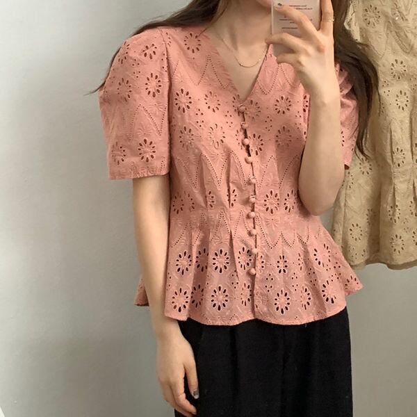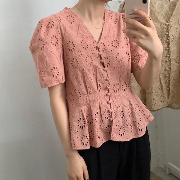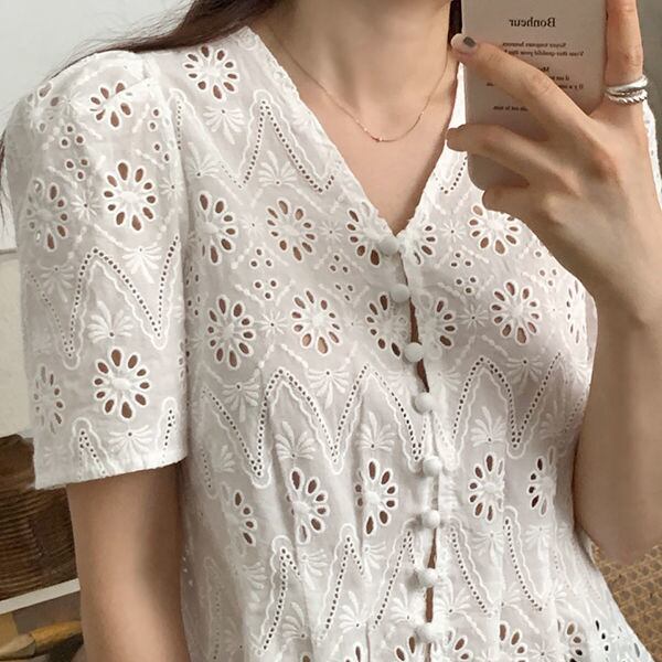 【送料無料】カットワーク レースブラウス パフスリーブ ブラウス シャツ t-346