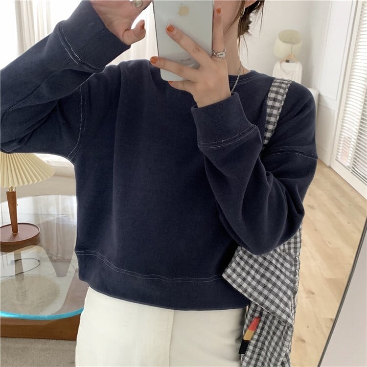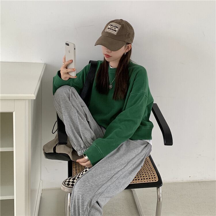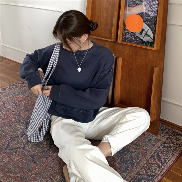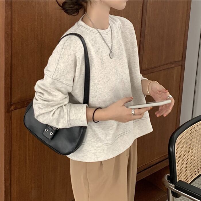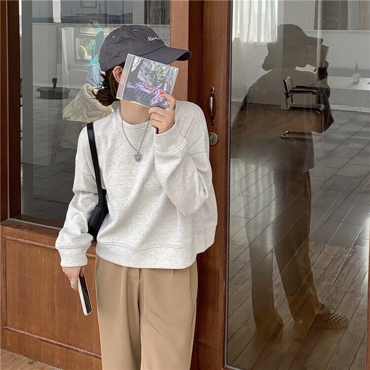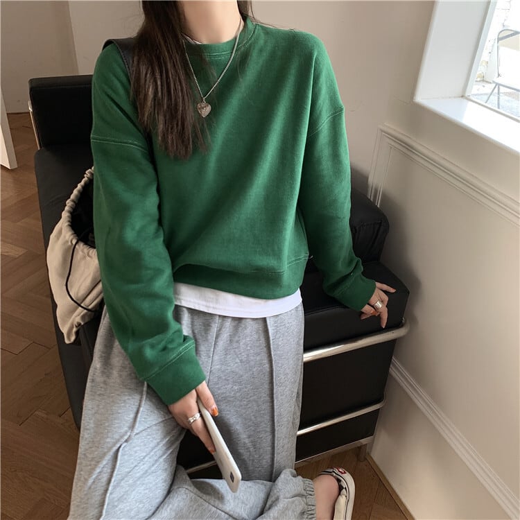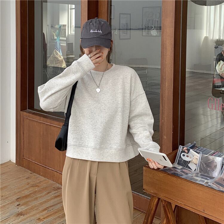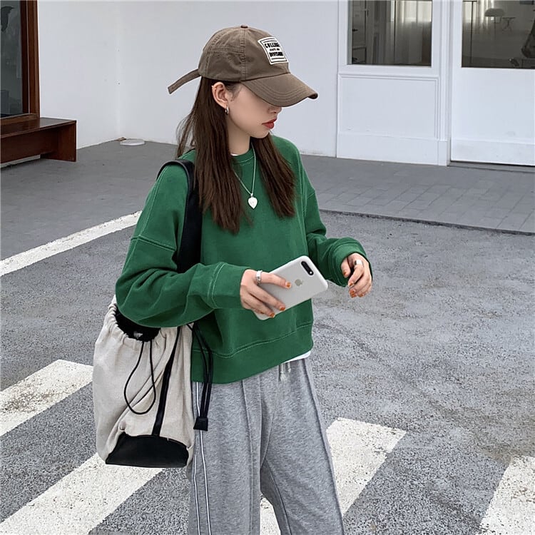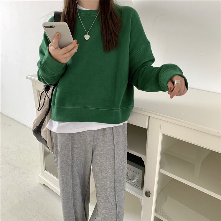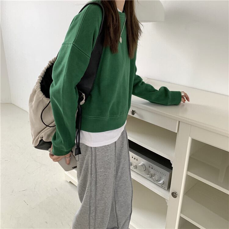 【送料無料】ドロップショルダー スウェット トレーナー トップス ショート丈 t-395