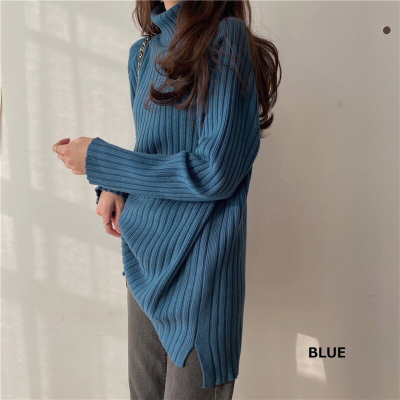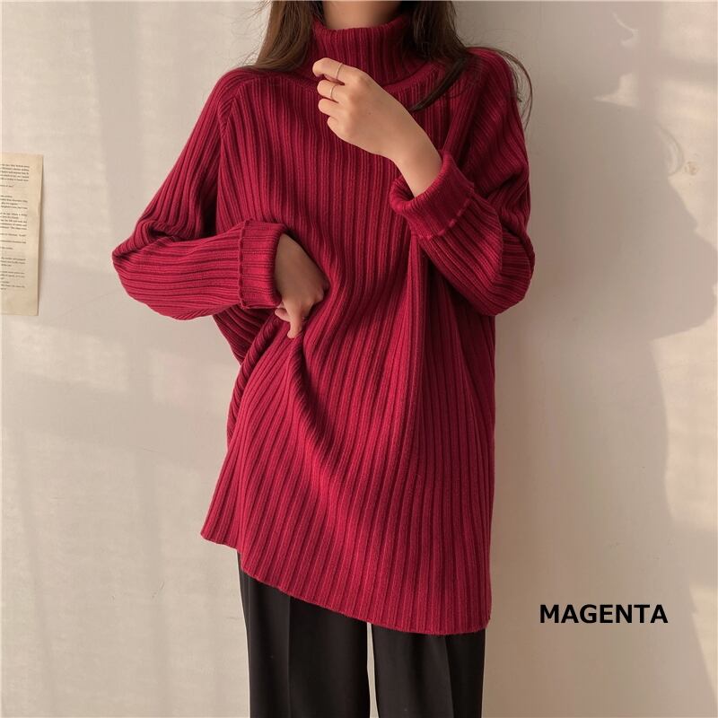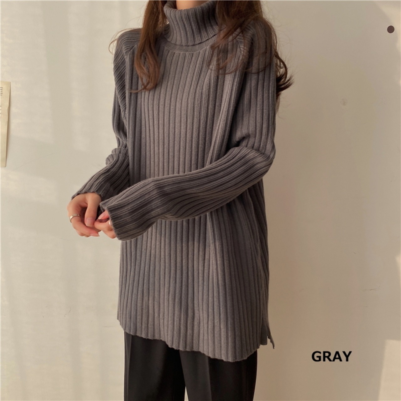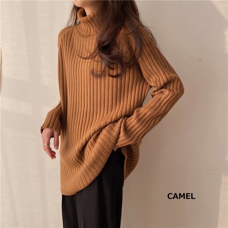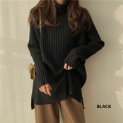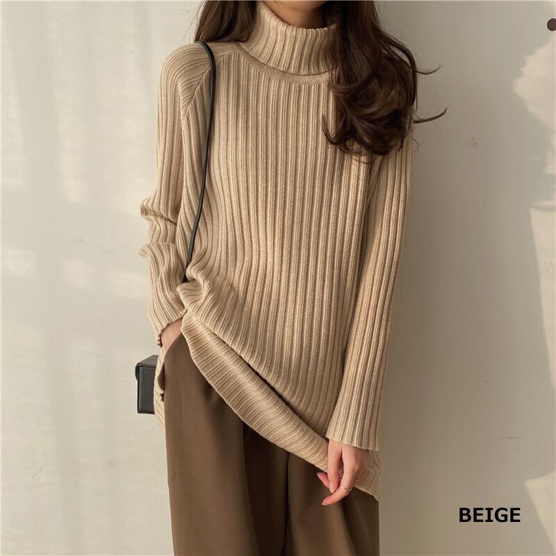 【送料無料】ハイネック リブタートルネックチュニック ニット リブ トップス t-409