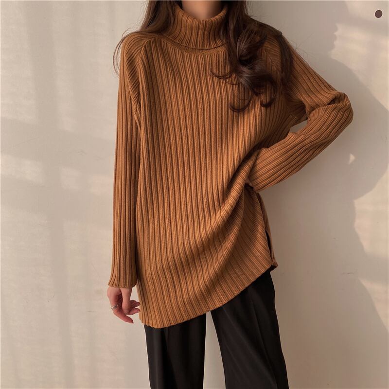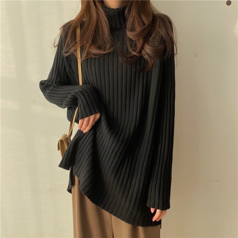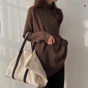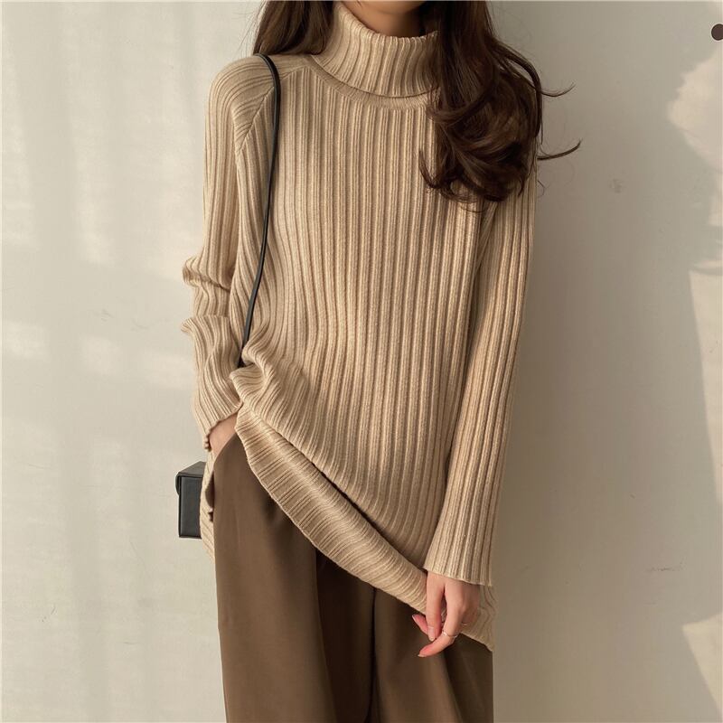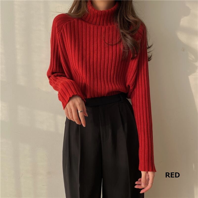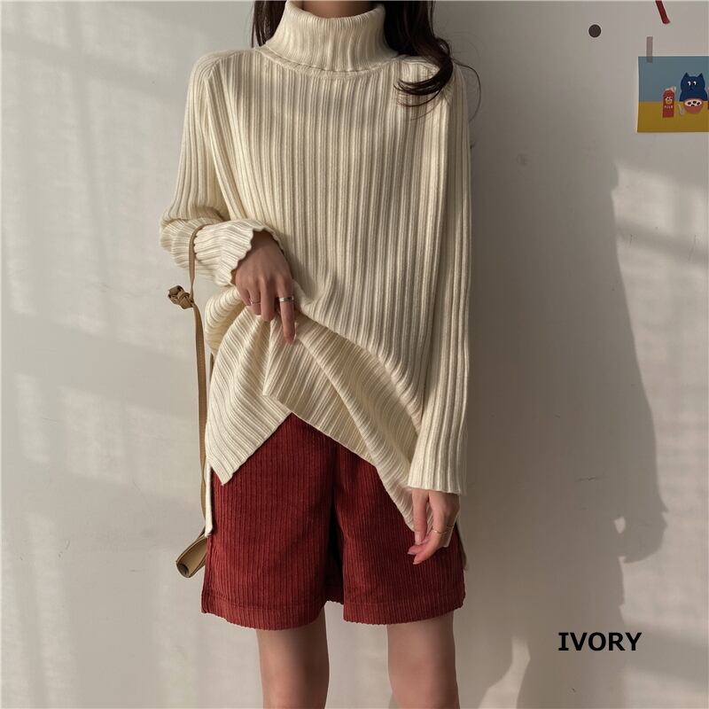 【送料無料】ハイネック リブタートルネックチュニック ニット リブ トップス t-409