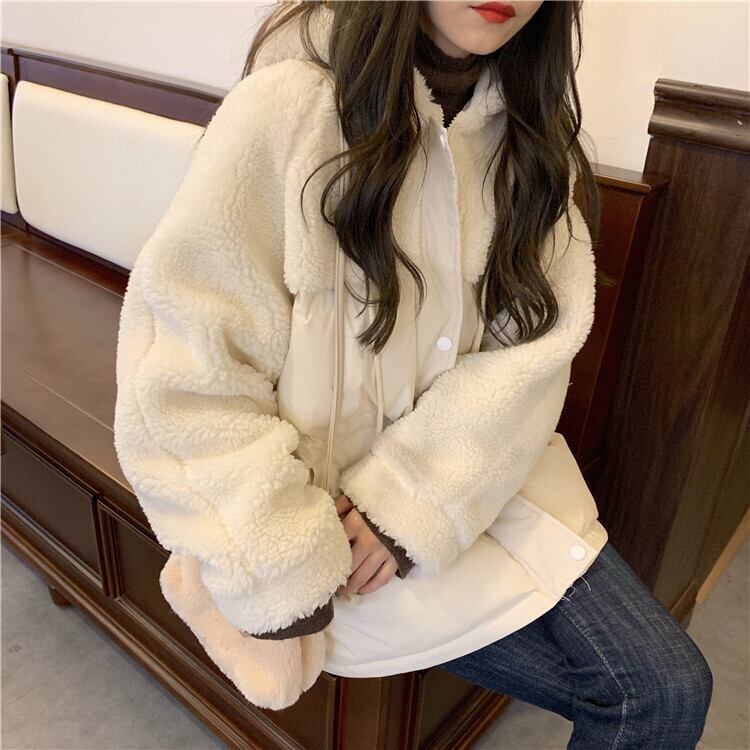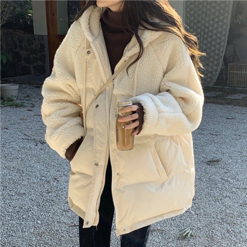 ボア×中綿の切り替えフードジャケット