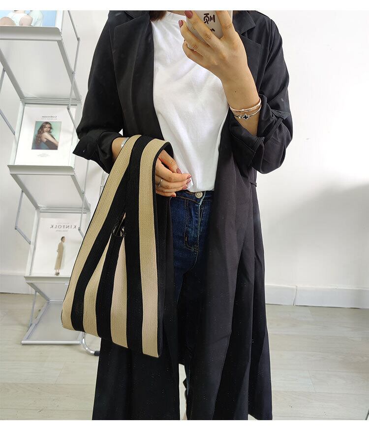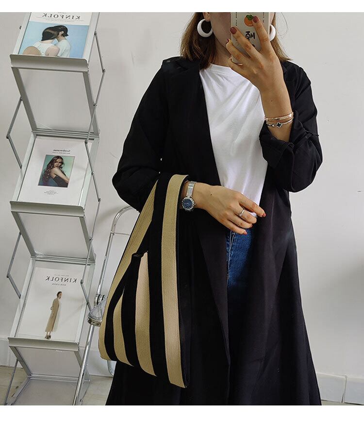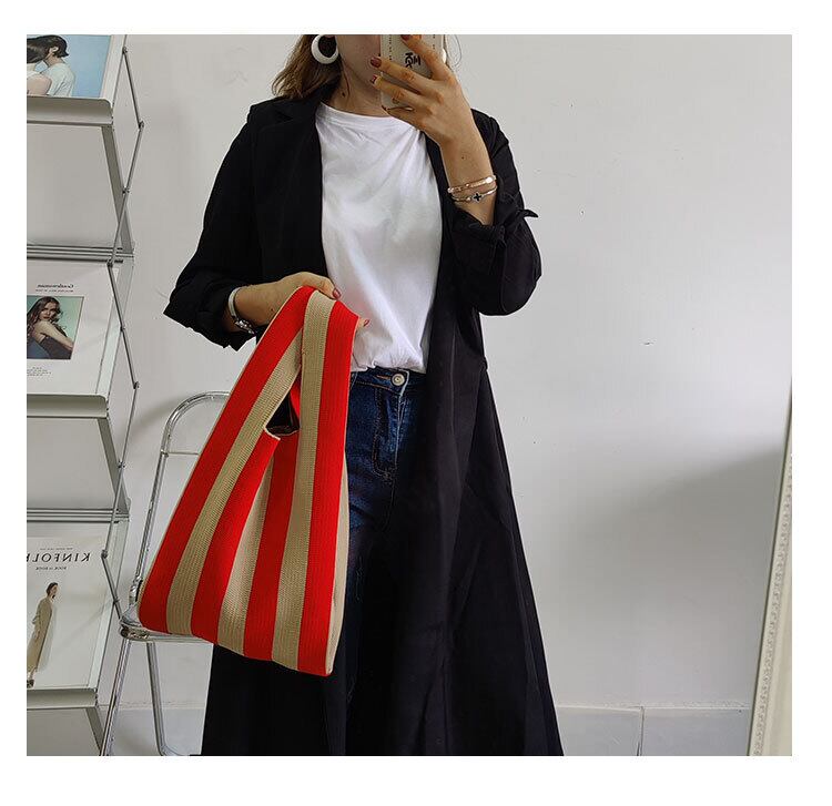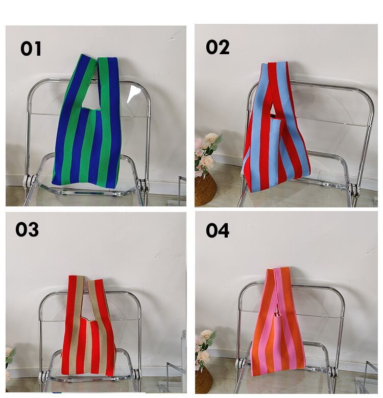 【送料無料】ストライプニットバッグ ショッパーバッグ エコバッグ t-422