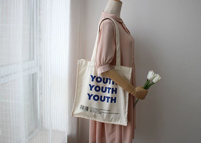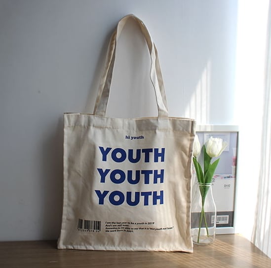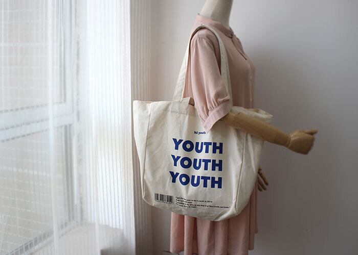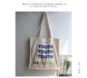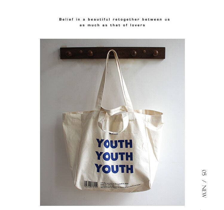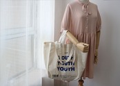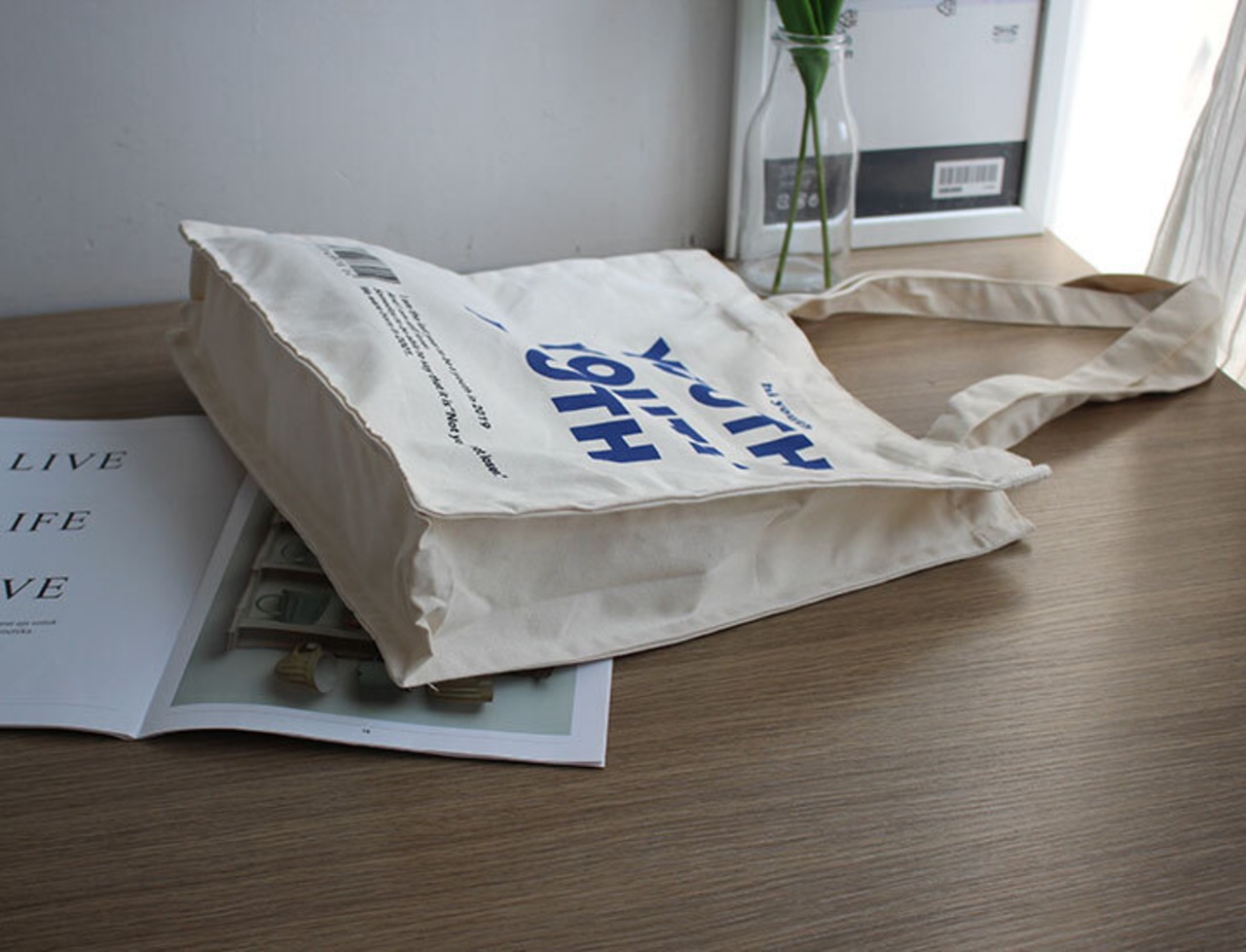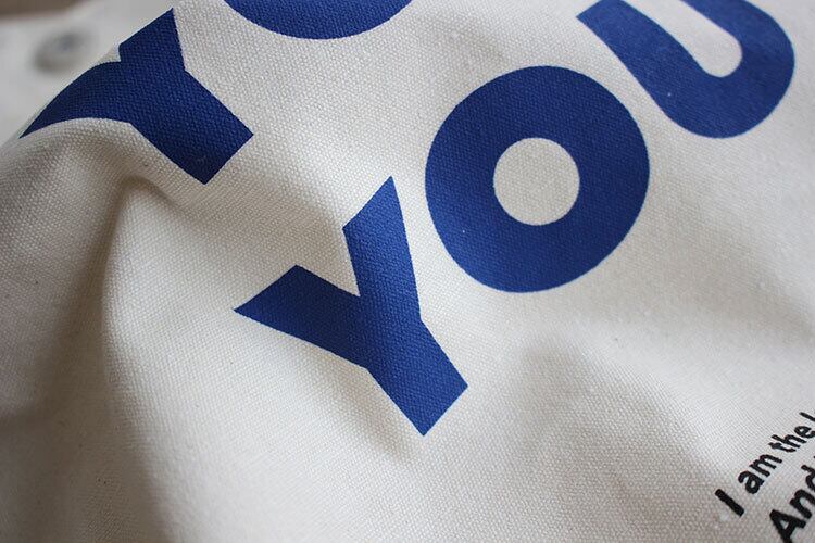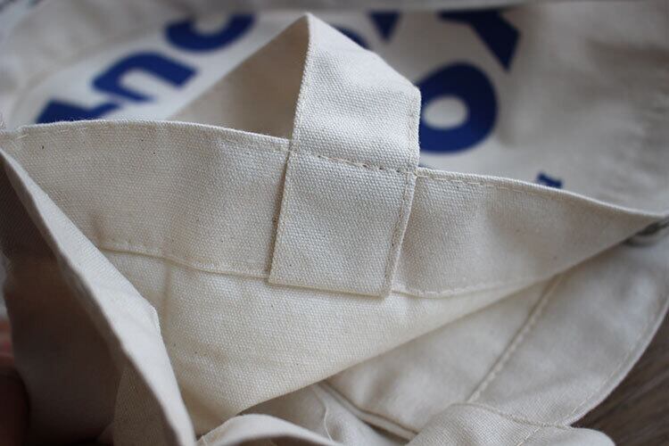 鮮やかなブルーロゴがコーデを選ばず使い勝手の良いキャンバストートバッグ