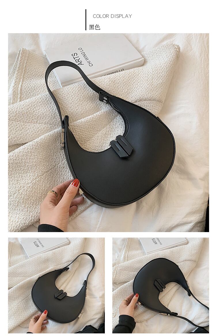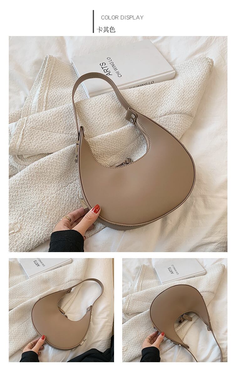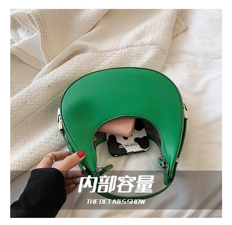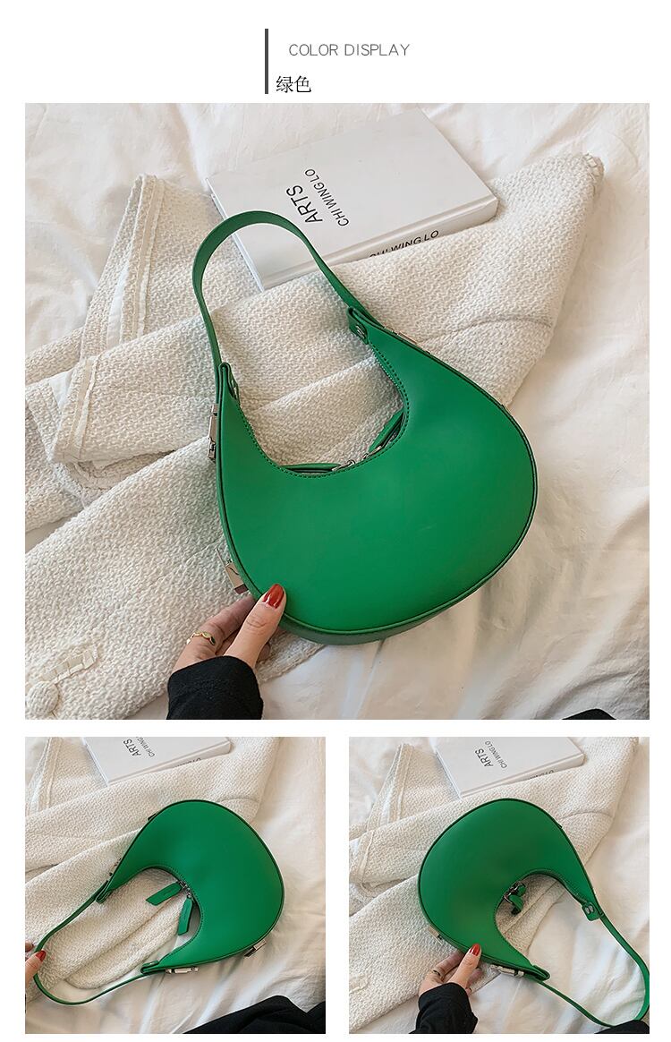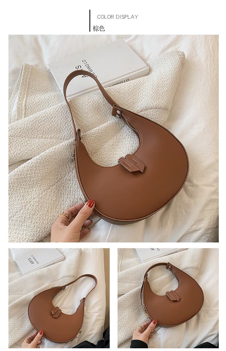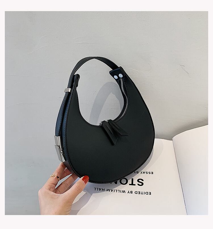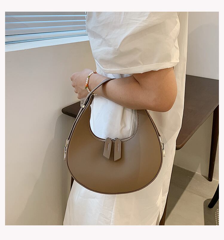 コロンとした三日月型のフォルムが目を引くハンドバッグ