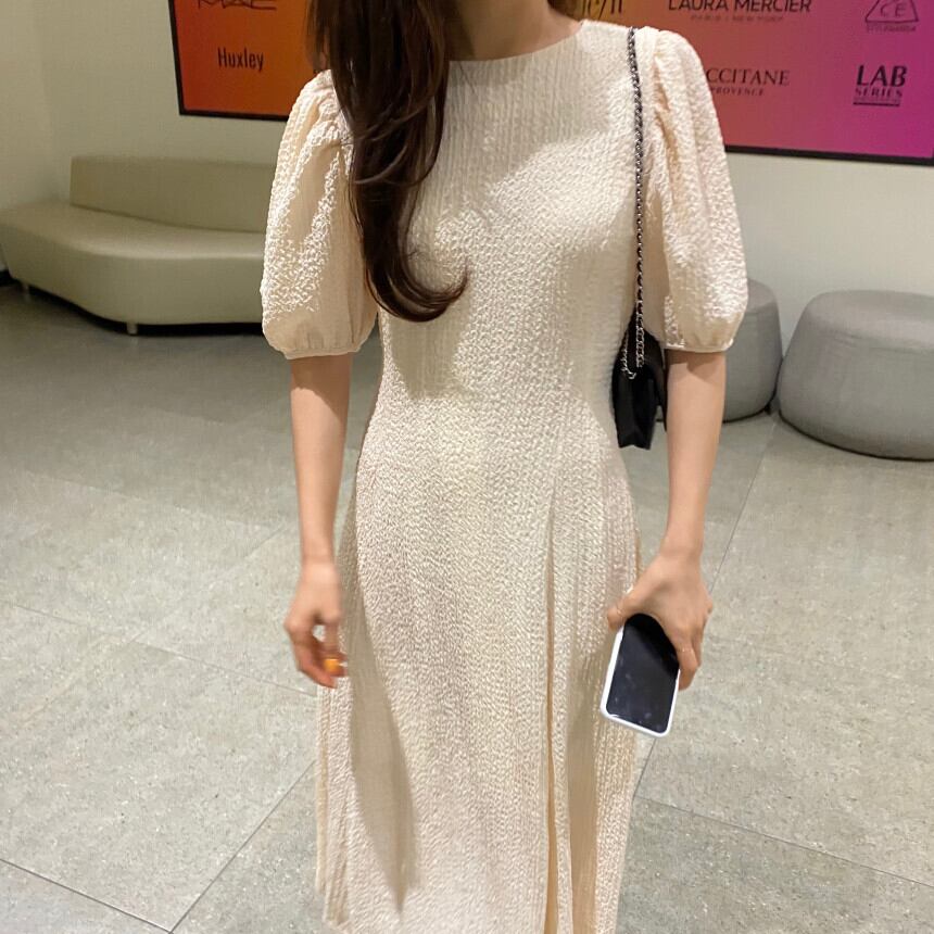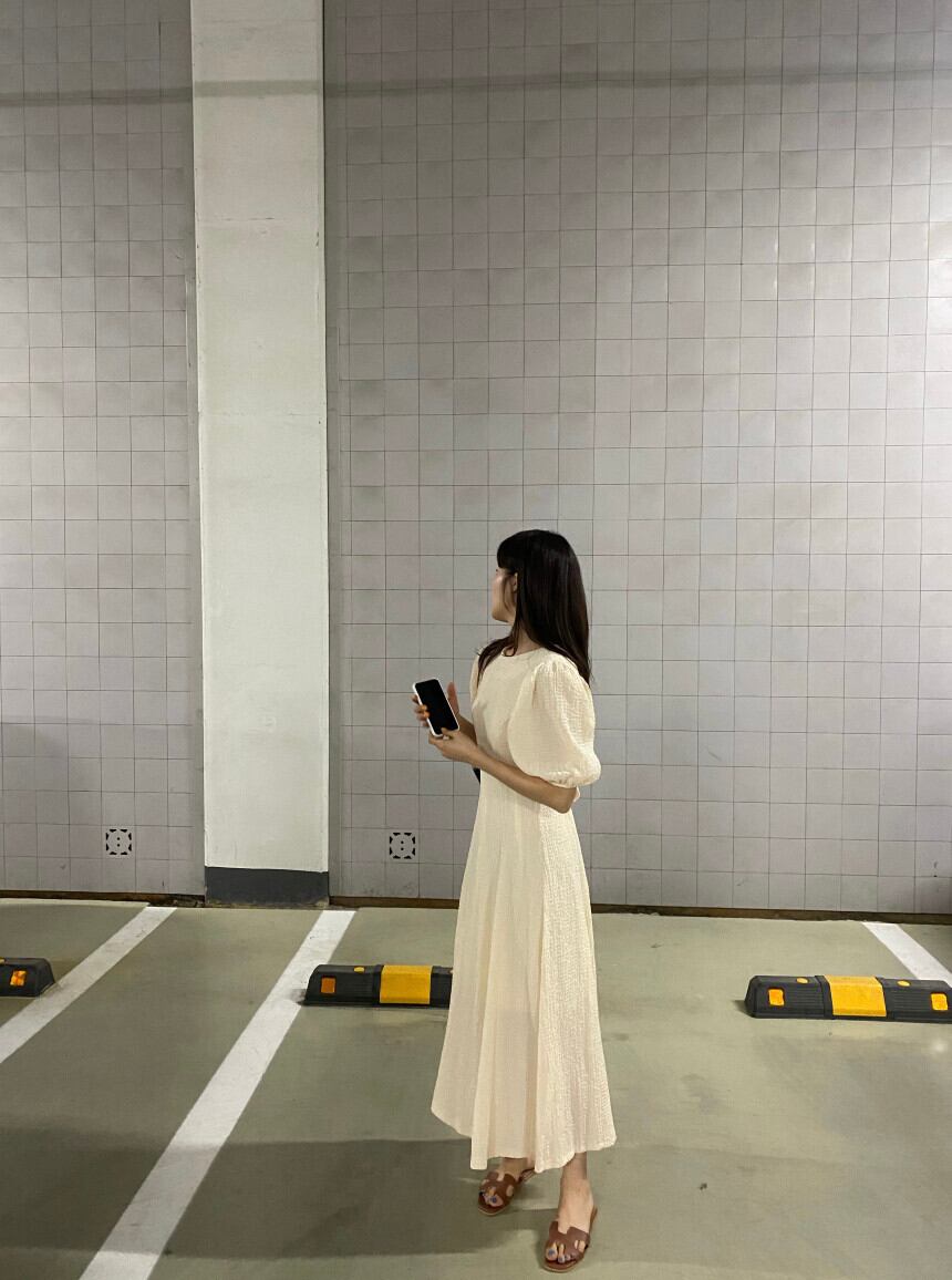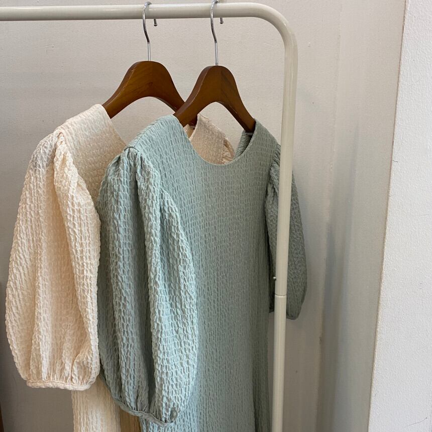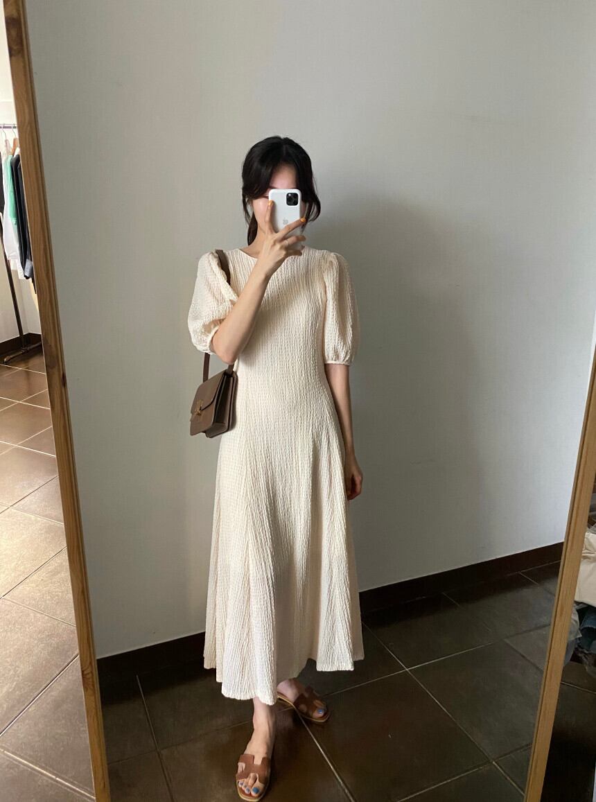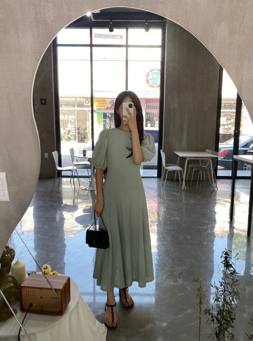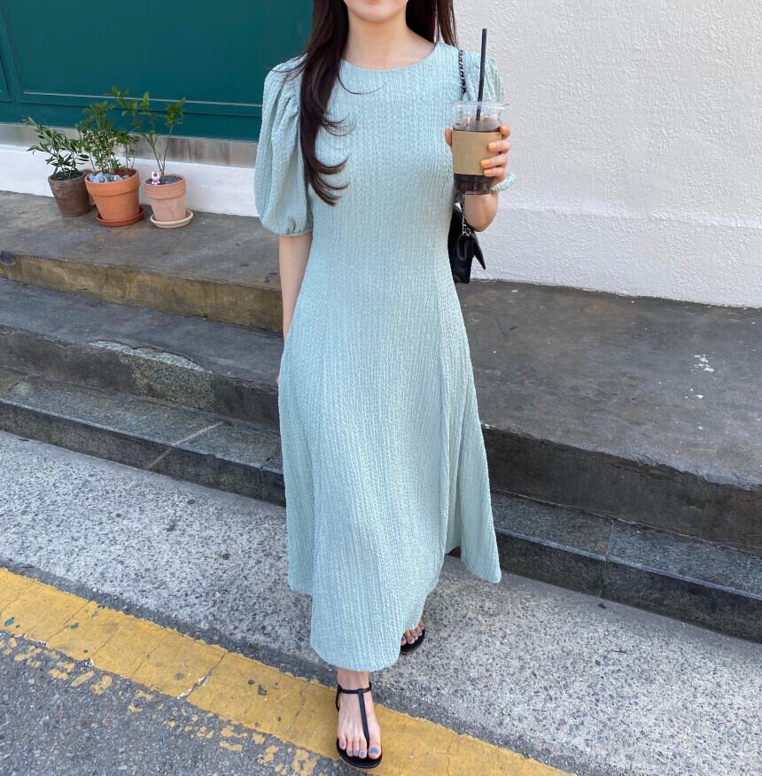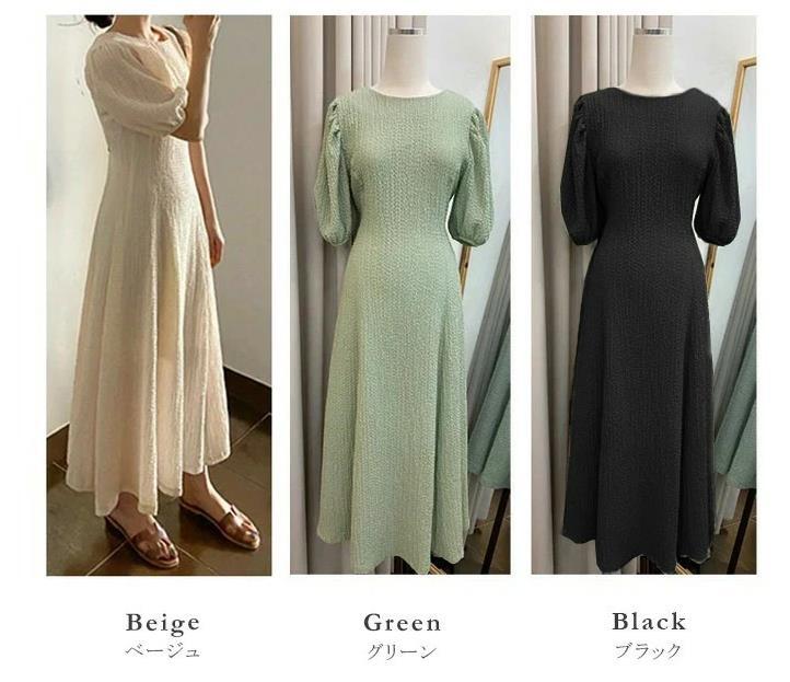 【送料無料】ぽこぽこパフスリーブ ロングワンピース 半袖 ワンピース t-475