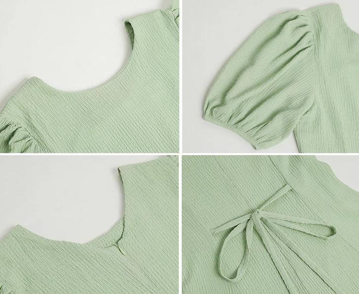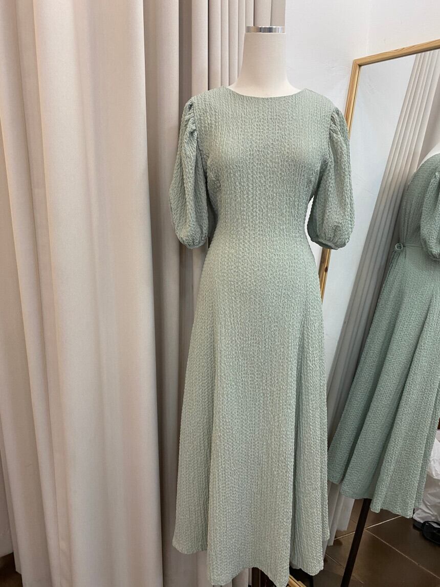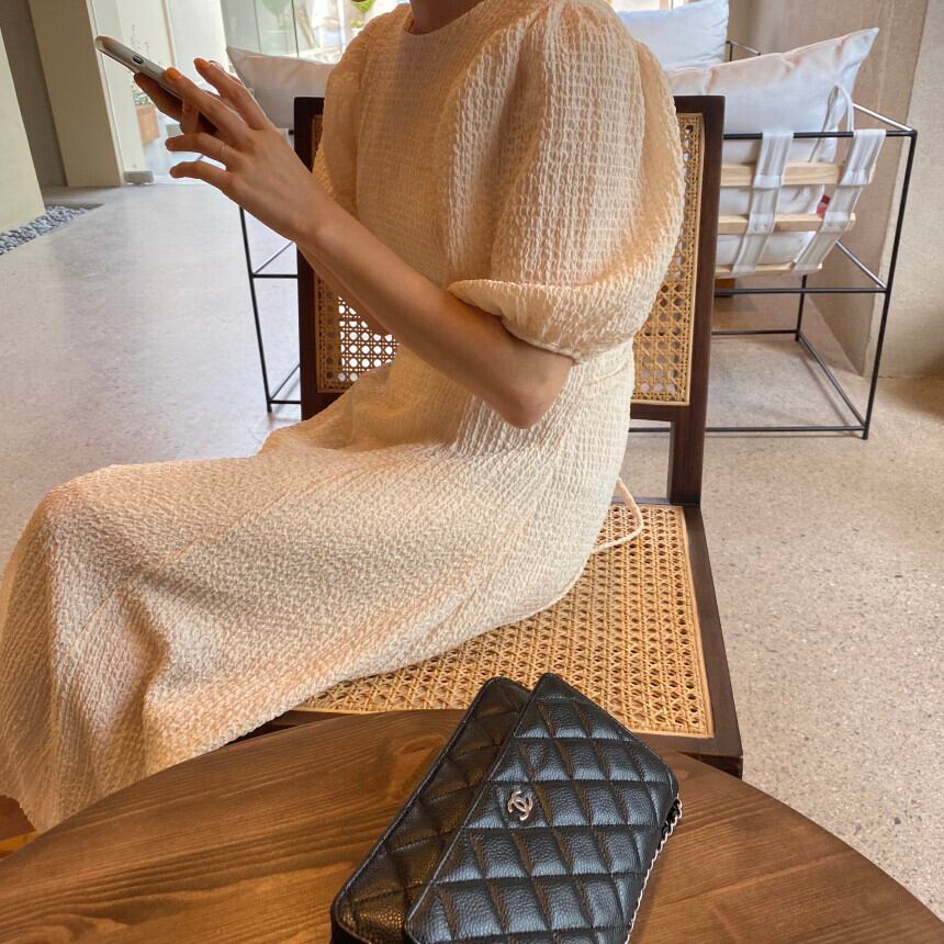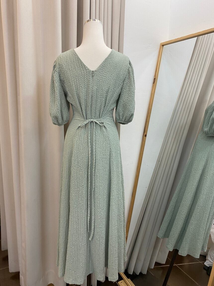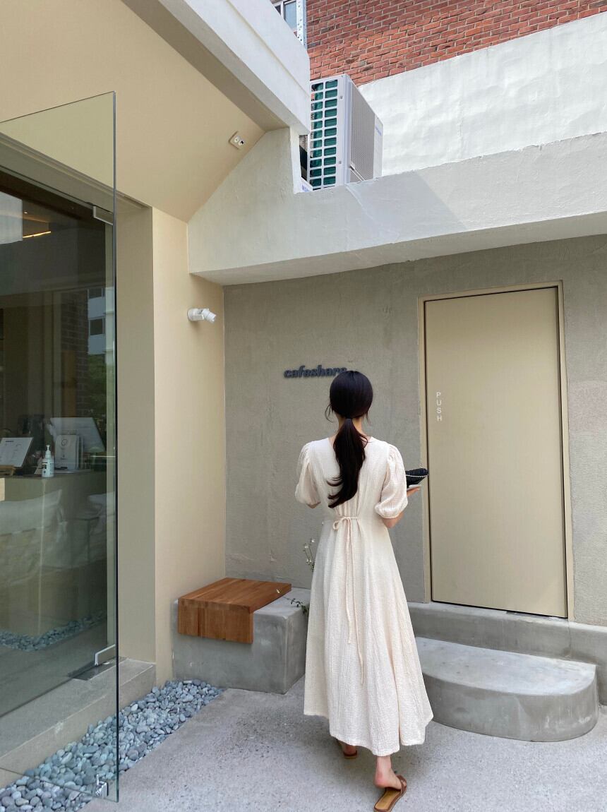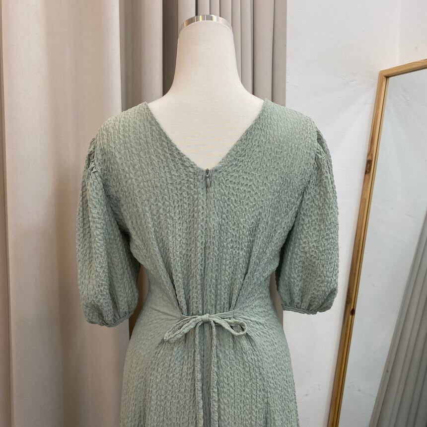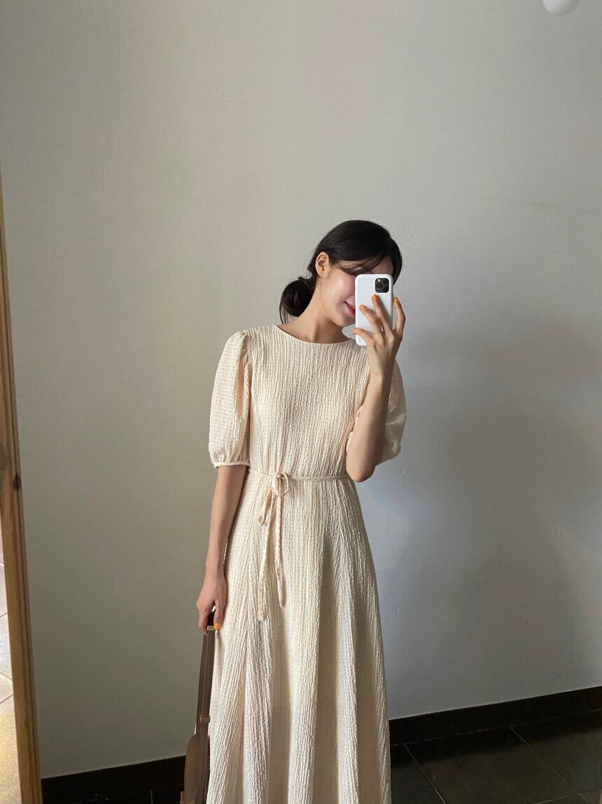 【送料無料】ぽこぽこパフスリーブ ロングワンピース 半袖 ワンピース t-475