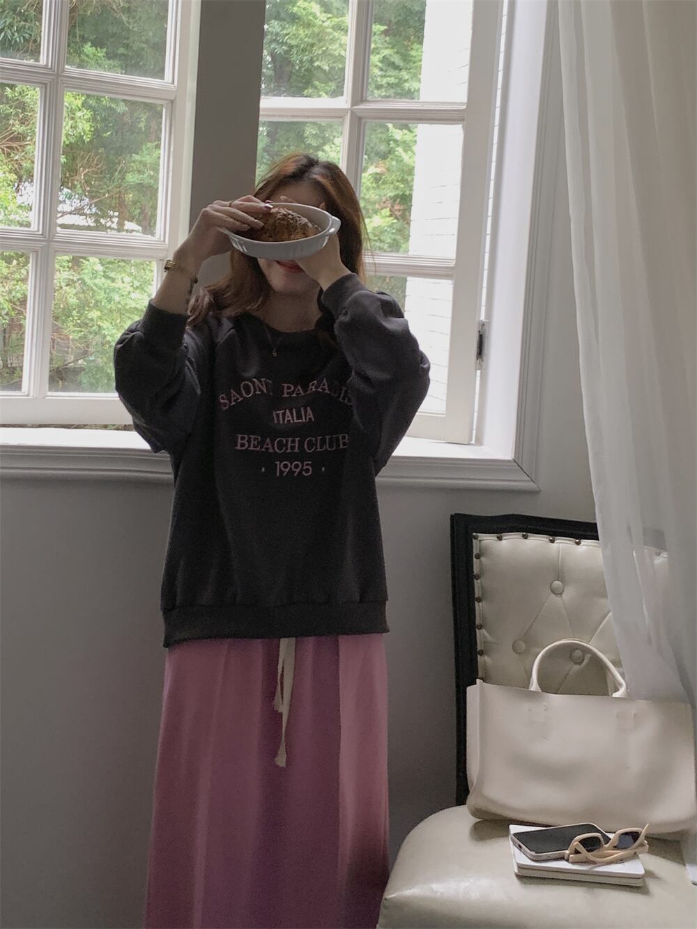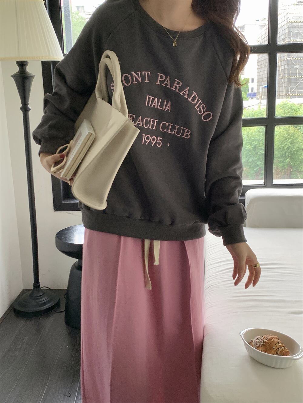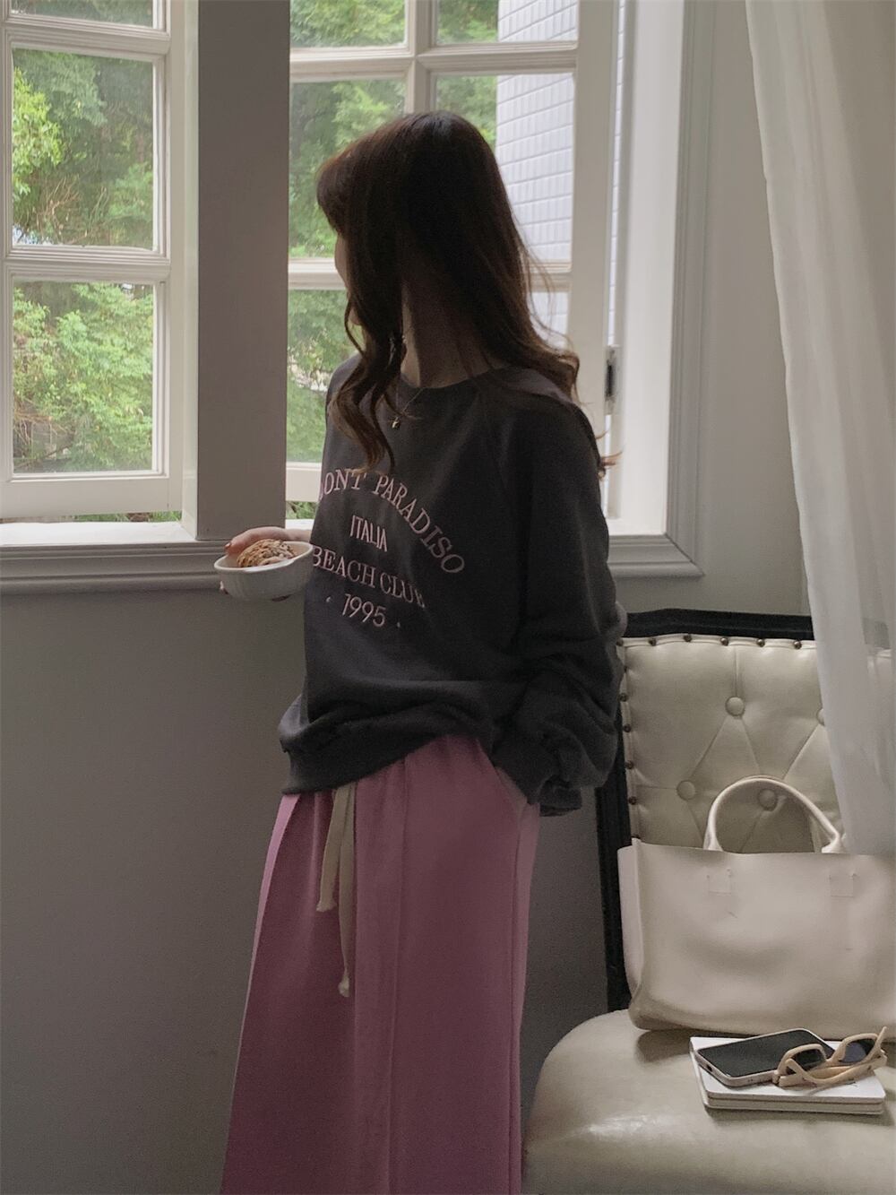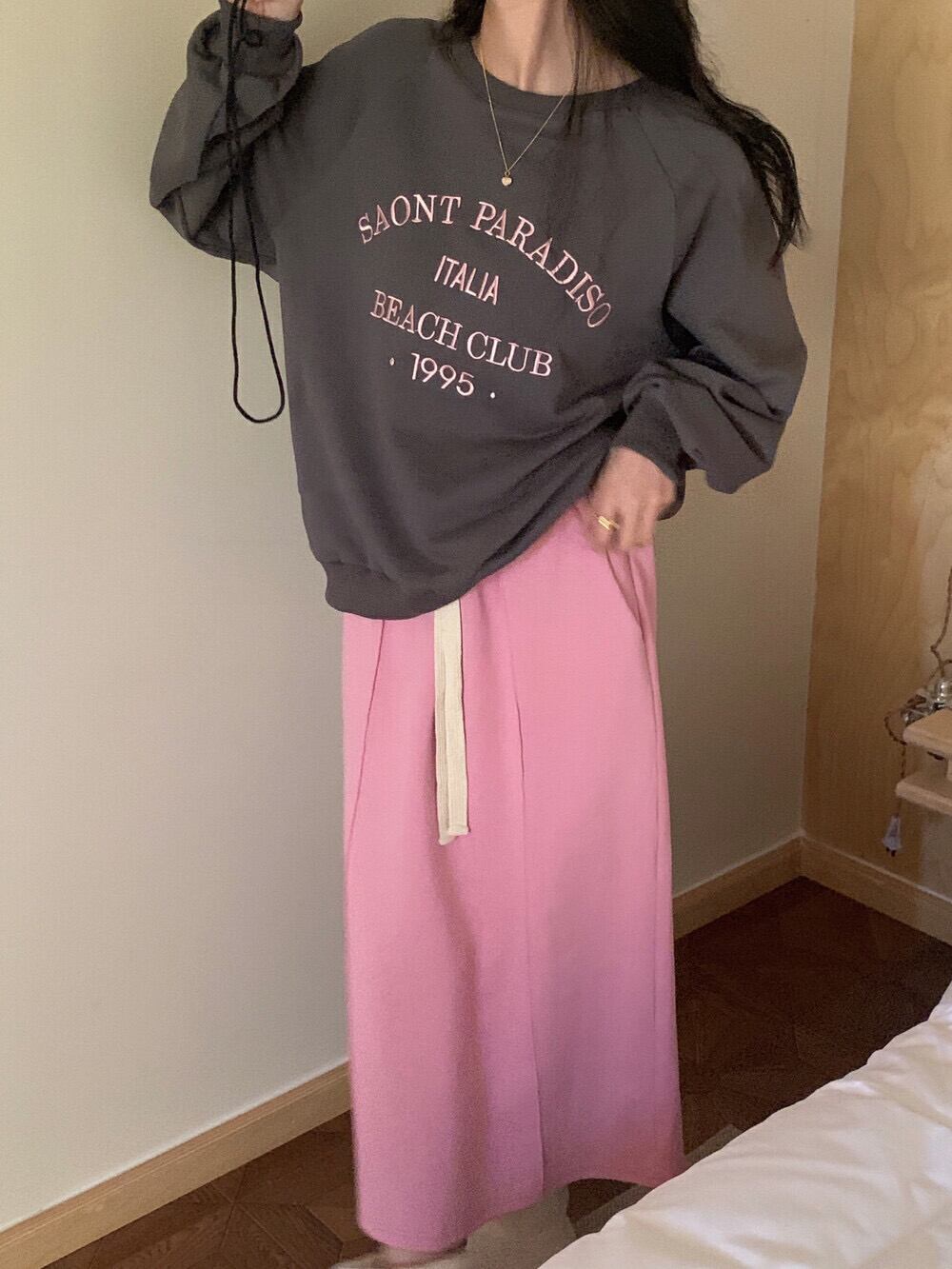 グレー×ライトピンクのカラーリングがかわいいロゴトレーナー