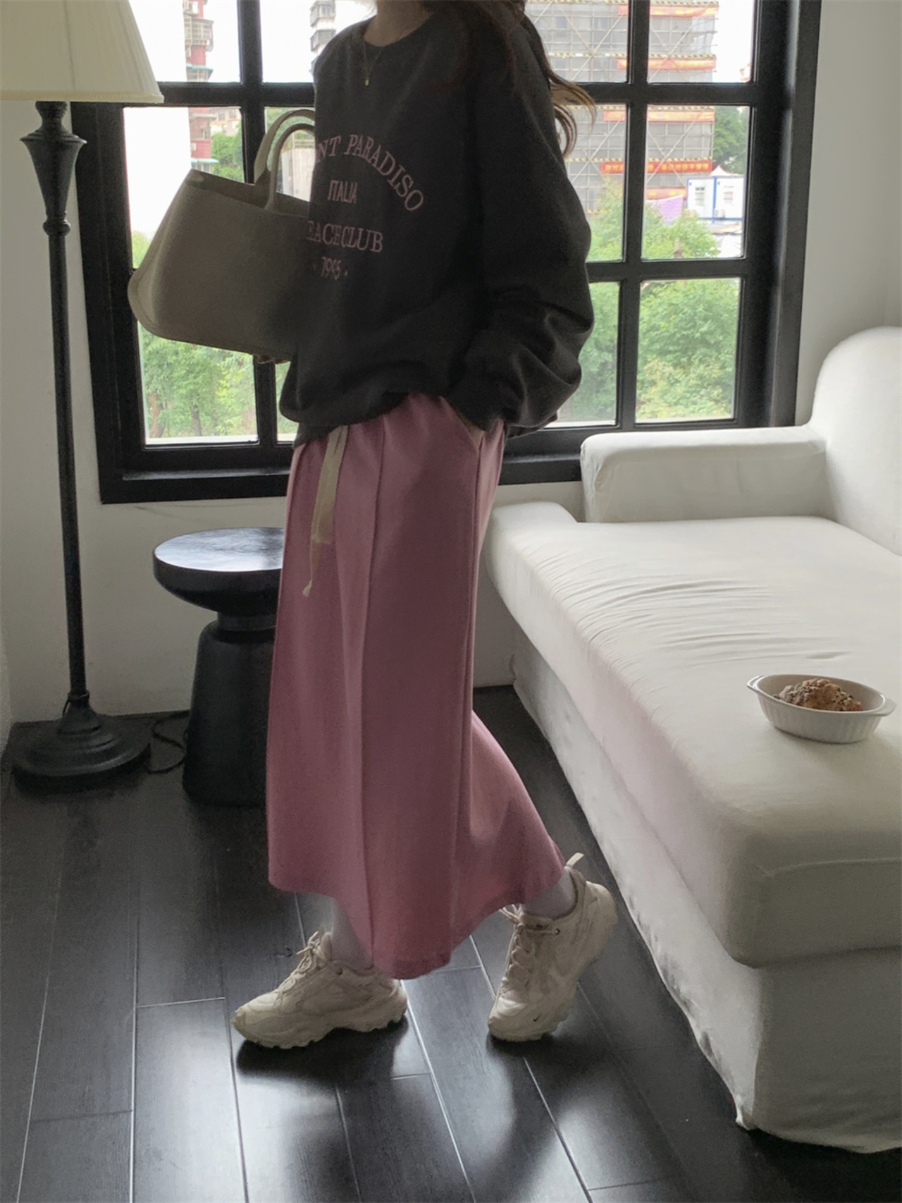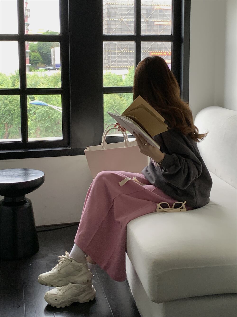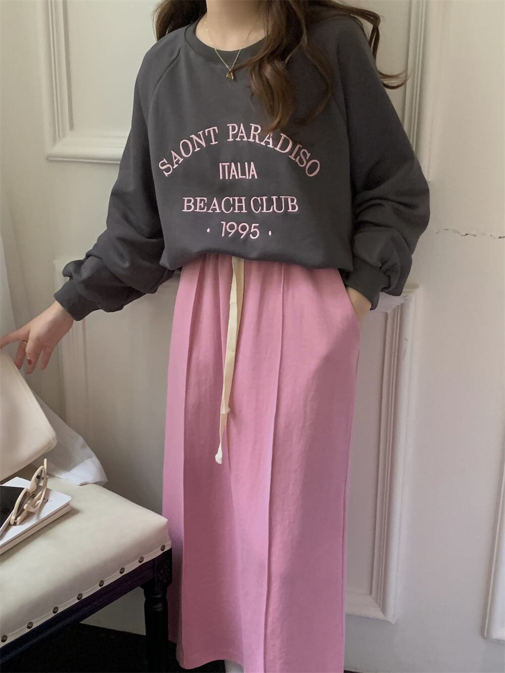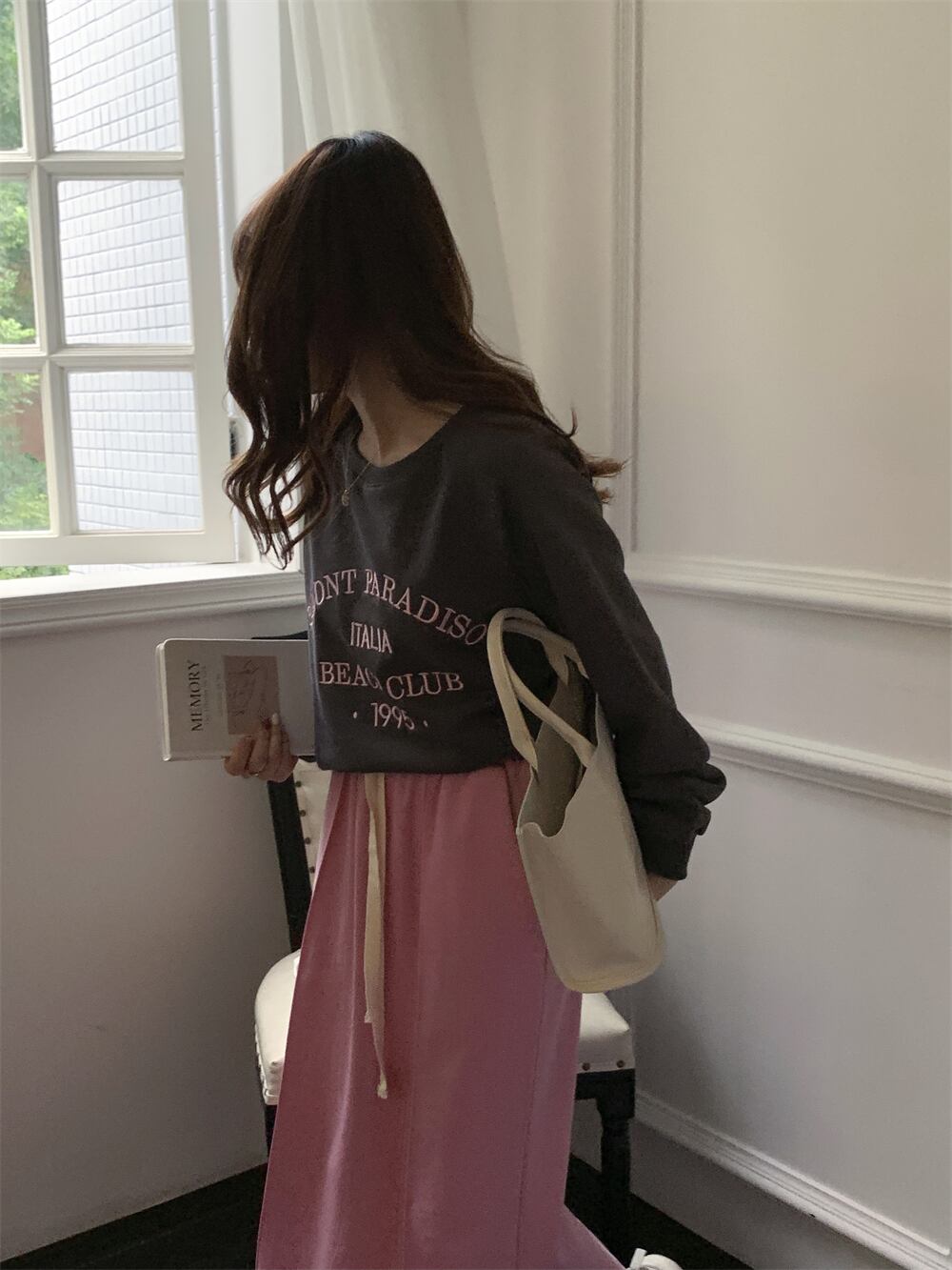 グレー×ライトピンクのカラーリングがかわいいロゴトレーナー