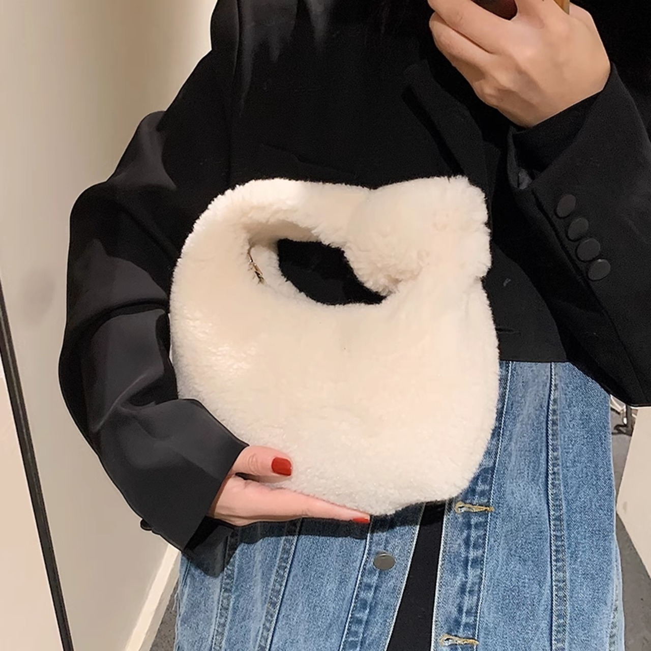 ミニマルなボアハンドバッグ。