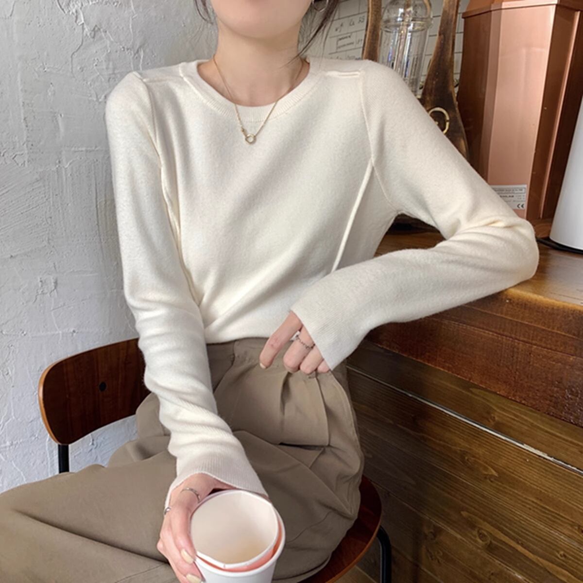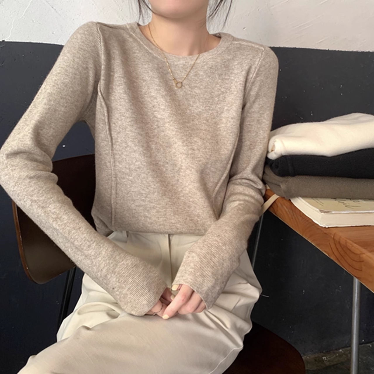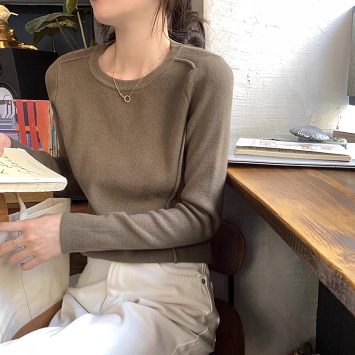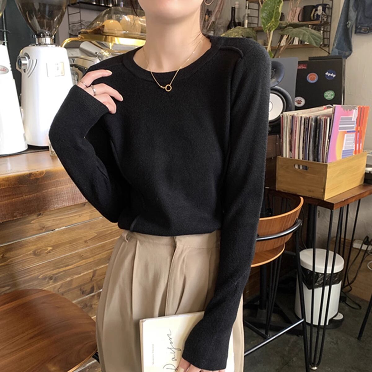 ほんのりデザイン性のあるニットカットソー