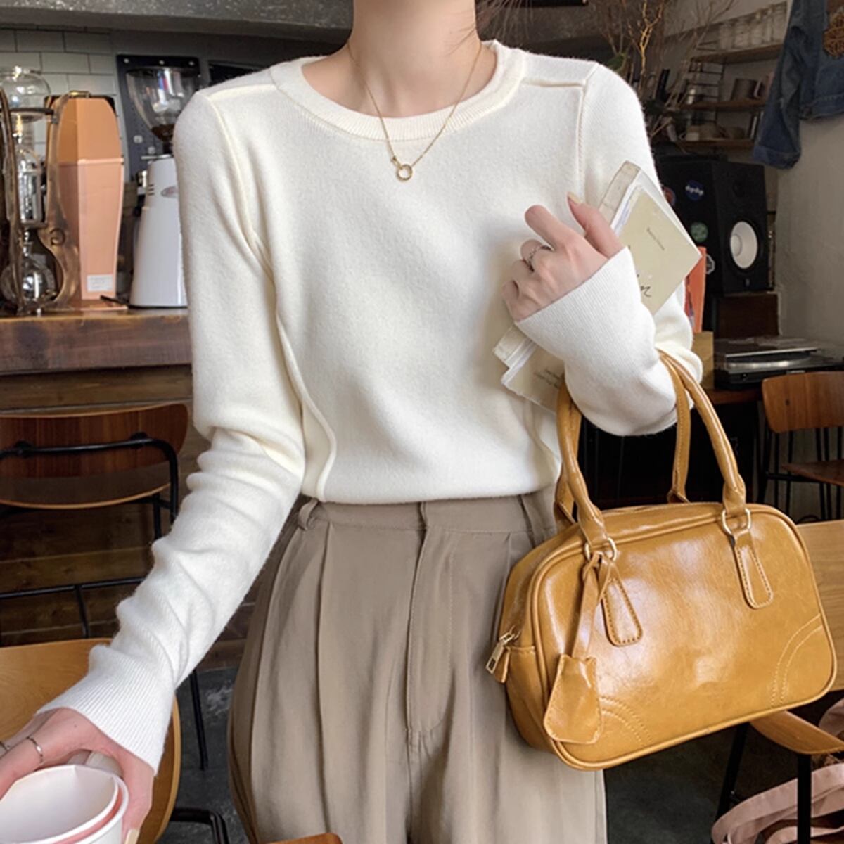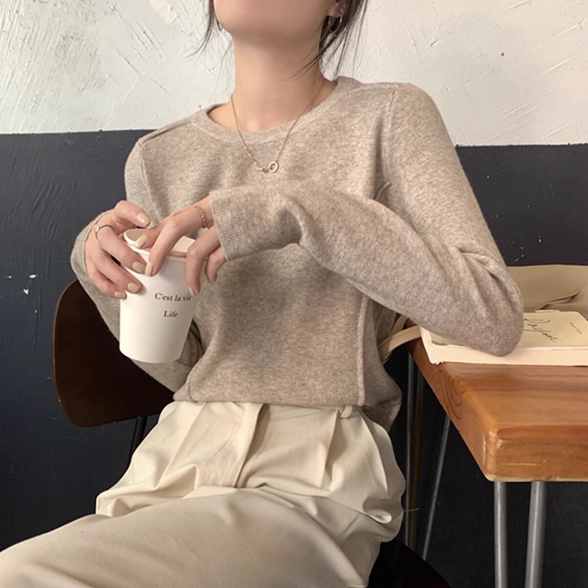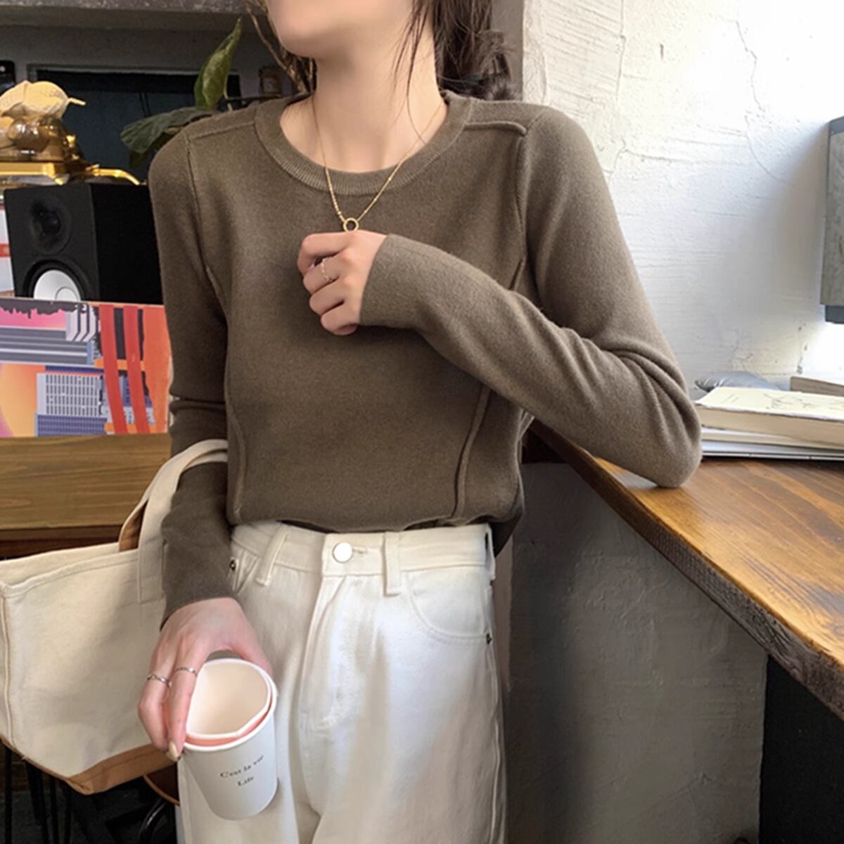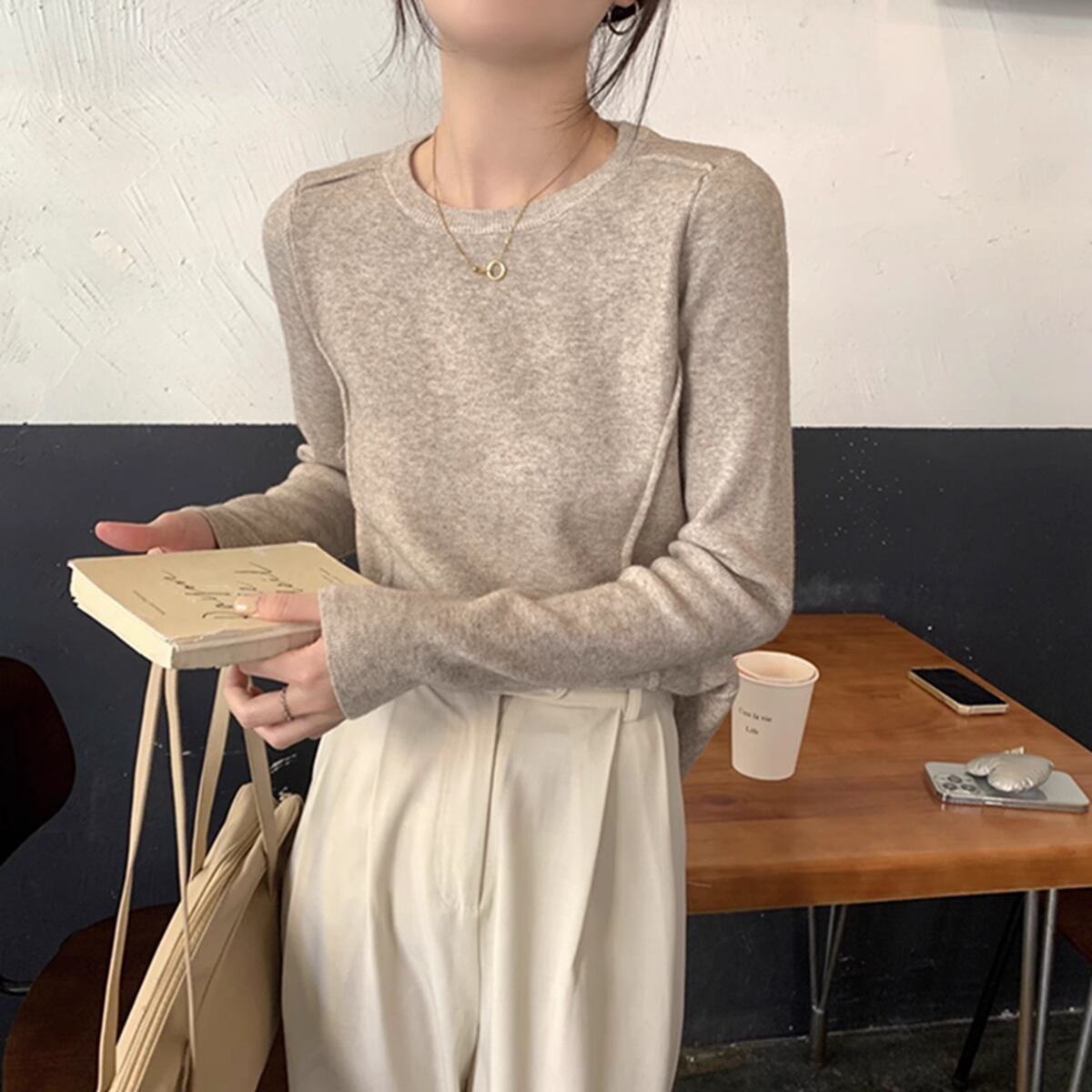 ほんのりデザイン性のあるニットカットソー