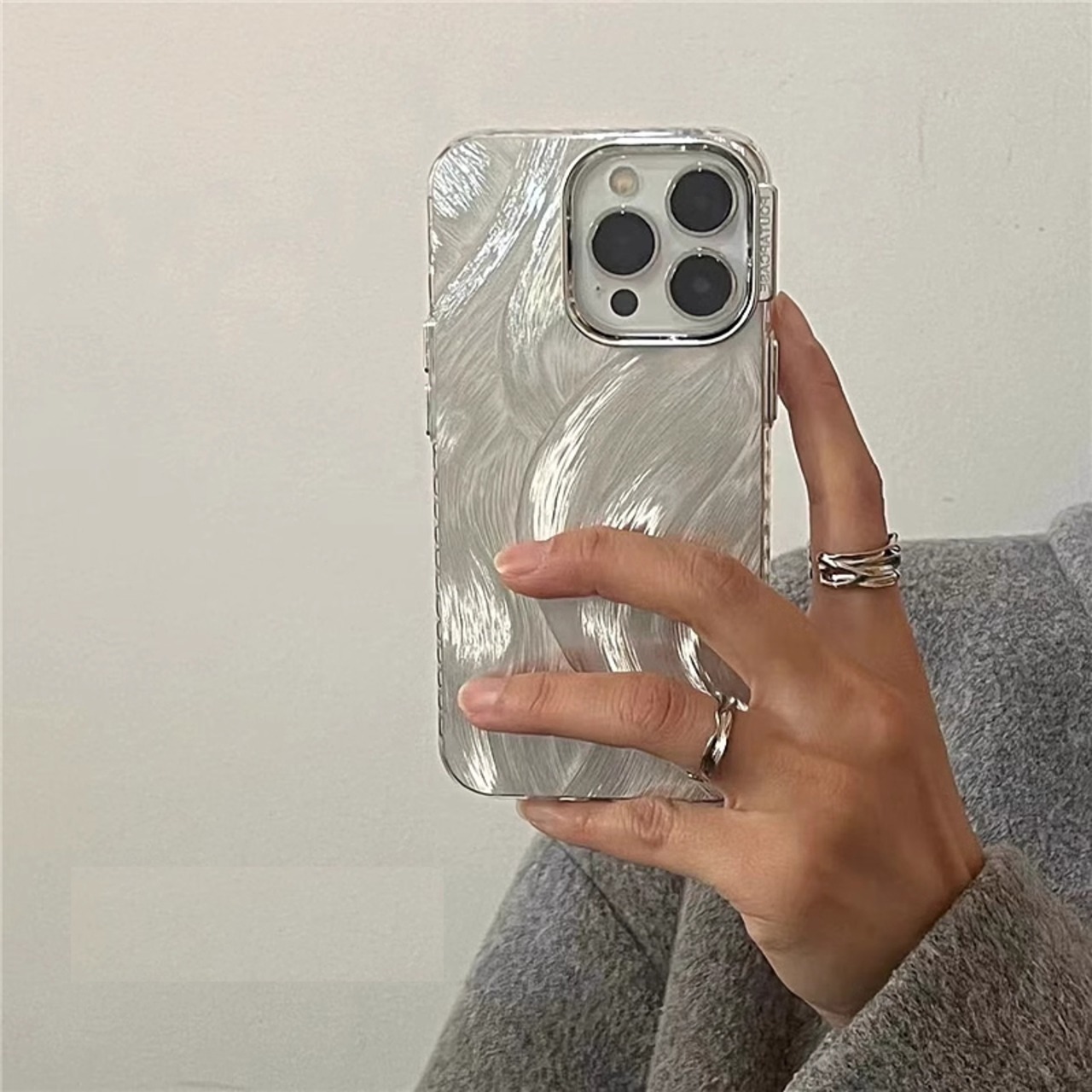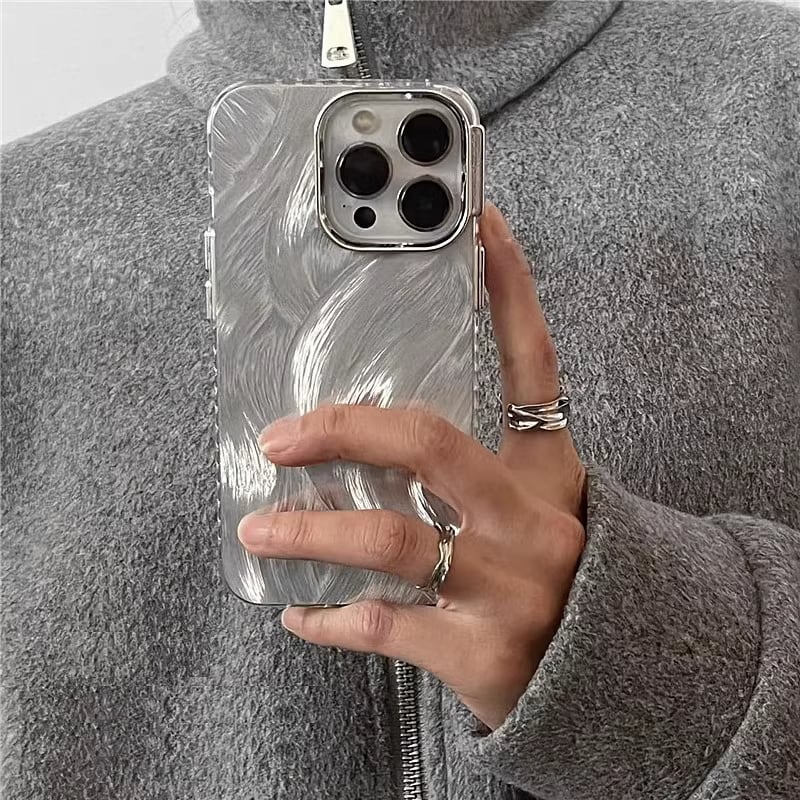 ハイエンドニッチシルバーフェザーヤーンを使用しており、上品な光沢感と高級感が魅力の一つです。シンプルながらもエレガントなデザインで、iPhoneをおしゃれに演出してくれます。